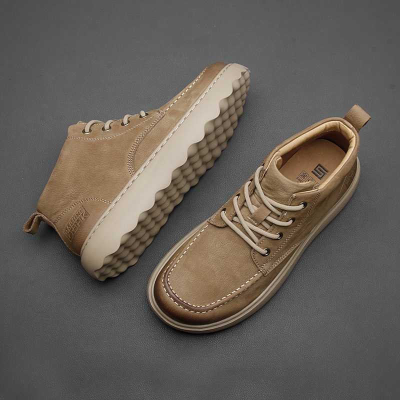 男鞋秋冬牛皮复古高帮鞋轻便厚底真皮透气休闲工装鞋英伦马丁靴子