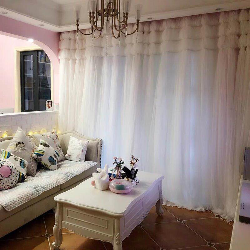 白色公主风少女心双层蕾丝窗帘网红卧室飘窗客厅遮光纱帘简约北欧