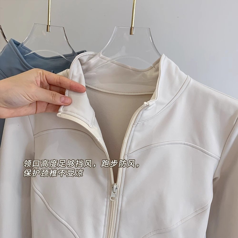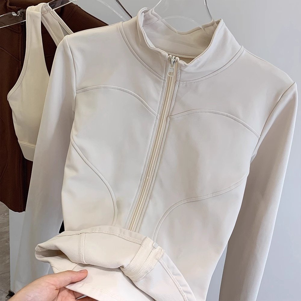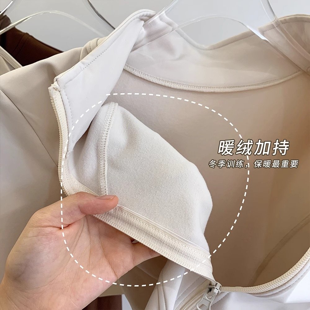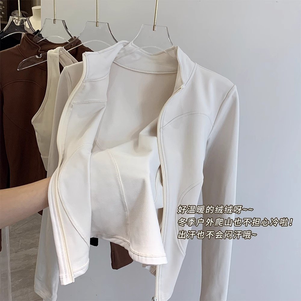 拉链开衫加绒瑜伽外套女冬季款修身显瘦立领跑步防风健身运动上衣