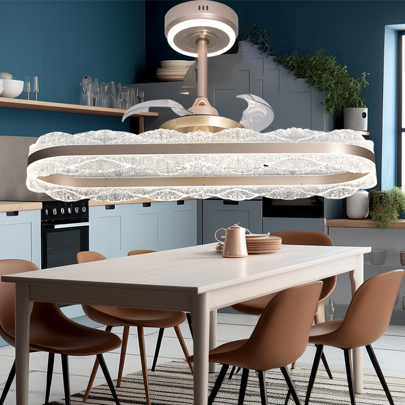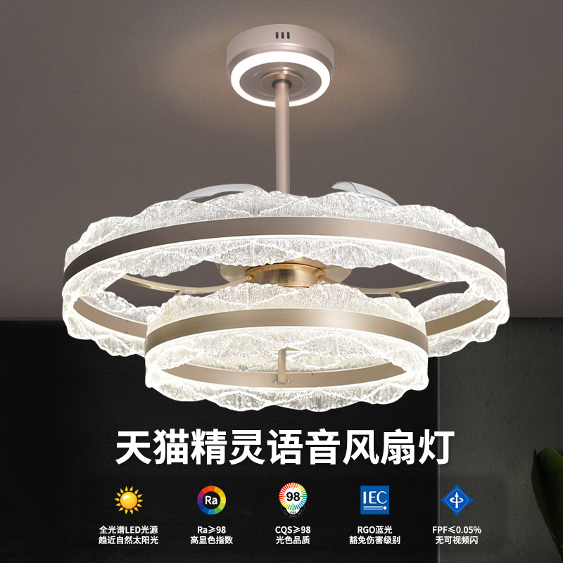 广东中山工厂直销隐形餐厅风扇灯现代简约吊扇灯全铜电机智能语音