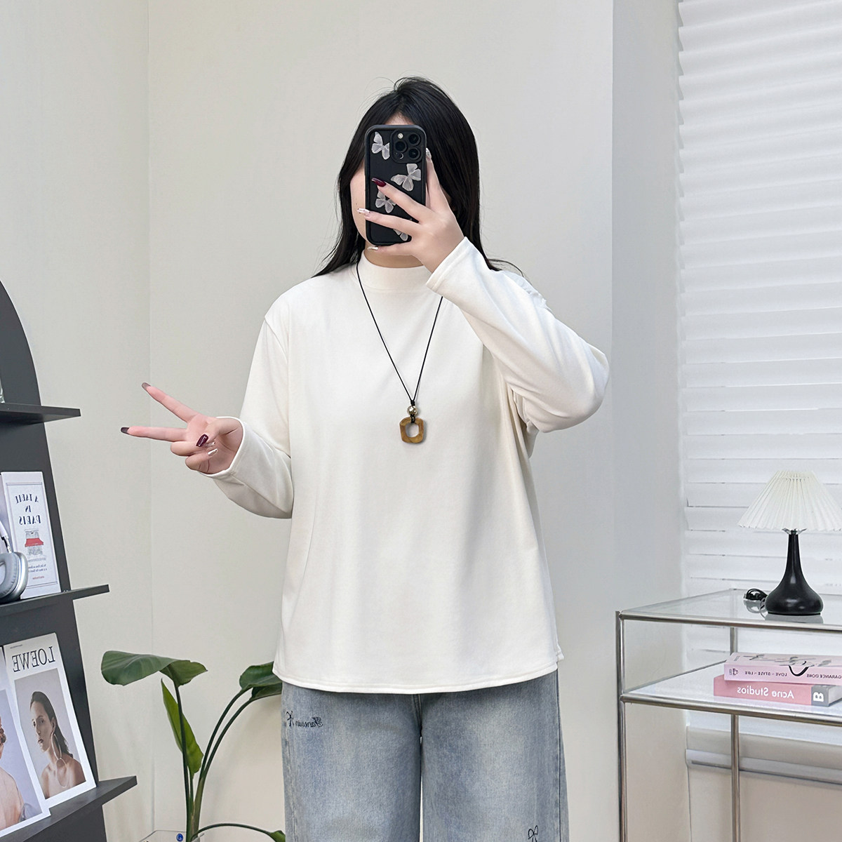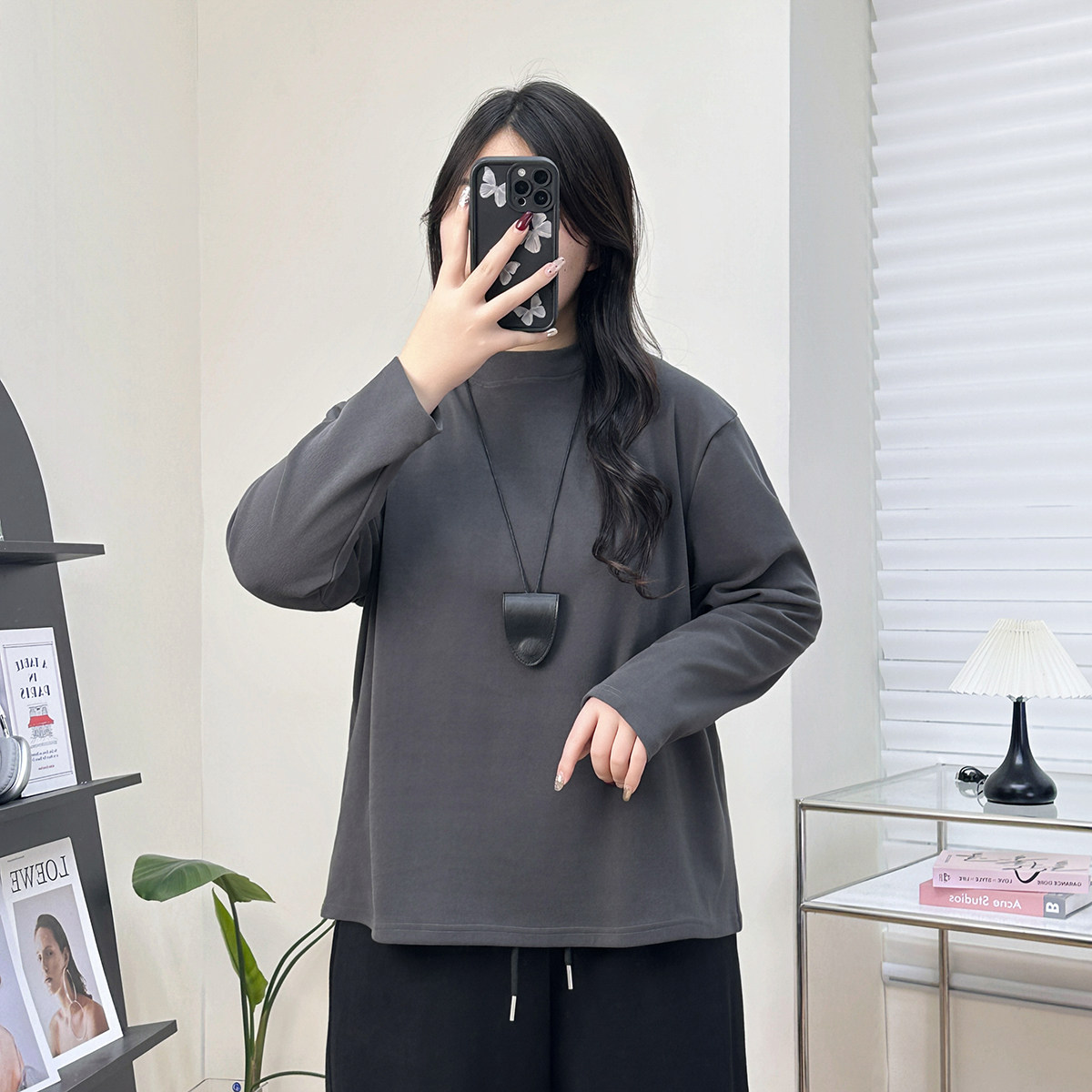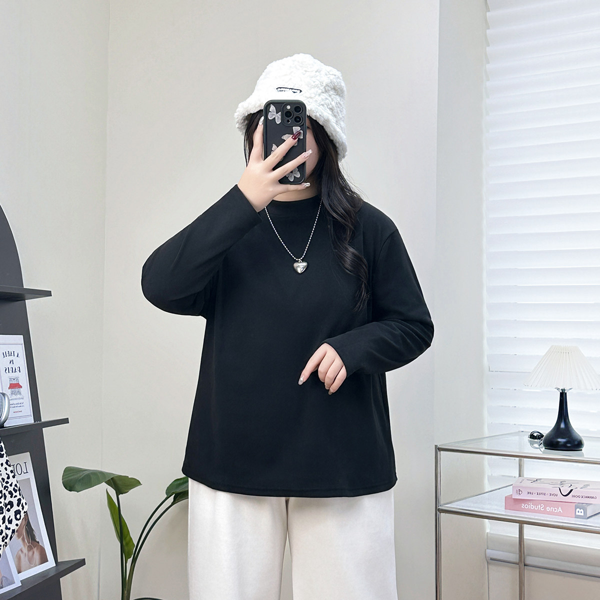 大码双面德绒打底衫女半高领内搭