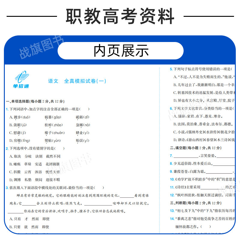 单招通2026年江西省职教高考复习资料高职单招语数英职业技能教材考试真题试卷模拟职业适应性测试春季小高考中职对口升学三校生25