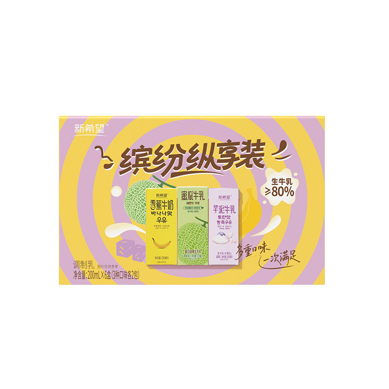 新希望风味牛奶缤纷装200ml*6盒香蕉芋泥蜜瓜调制乳牛乳哈密瓜