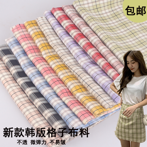 微弹力格子布料diy手工衣服不透服装夏季A字裙面料高档垂感涤纶
