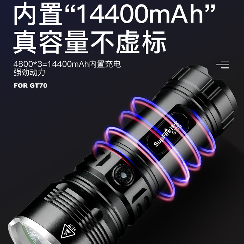神火GT70手电筒强光超亮远射长续航户外照明探照灯多功能6000