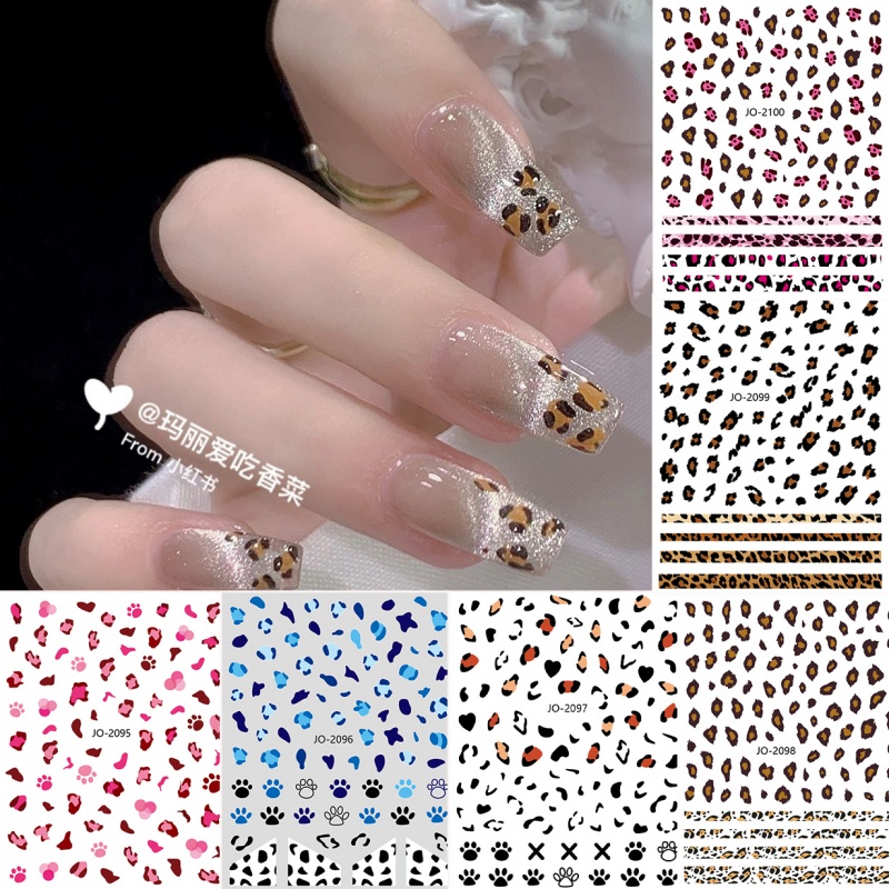 网红爆款美甲贴纸豹纹指甲装饰品带背胶2024年新款秋冬美拉德风格