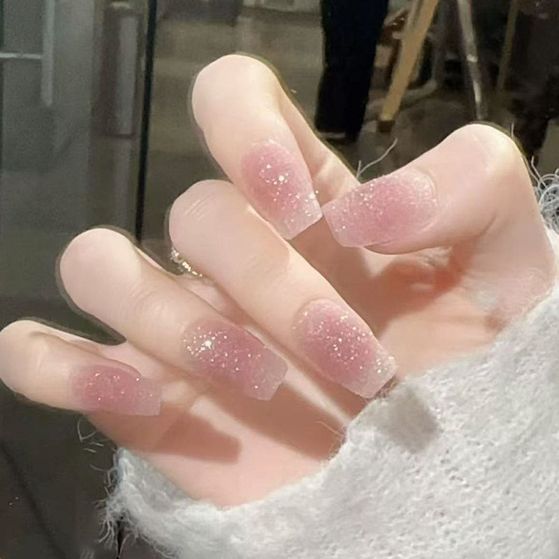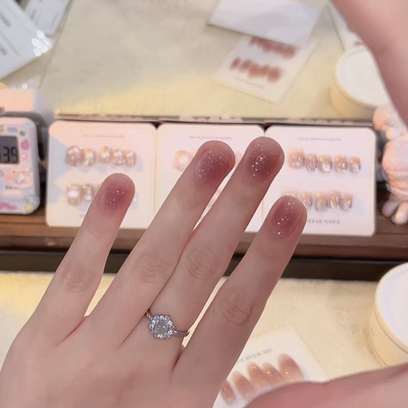 【荔枝冰沙】纯手工高级冰沙颗粒感猫眼轻奢显白蜜桃粉美甲穿戴甲