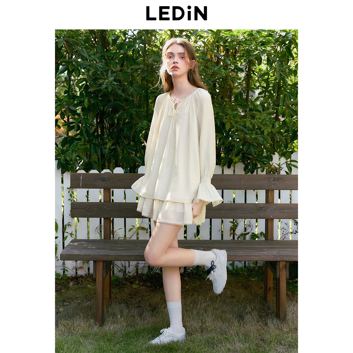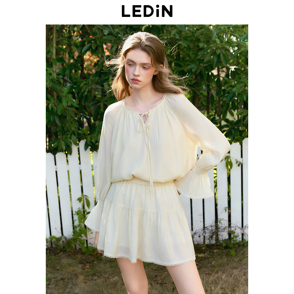 乐町枫叶绉雪纺衫2025春季新款宽松版型百搭上衣A版百搭系带衬衫