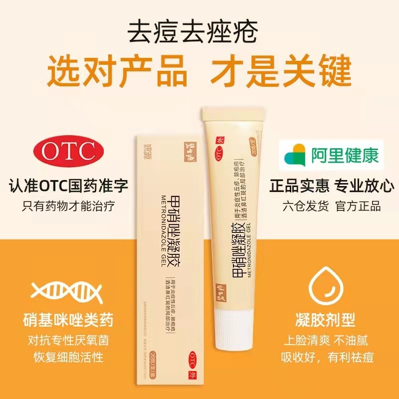 碧生源甲硝锉凝胶正品甲硝唑凝祛痘印消炎红肿淡化痤疮酒渣鼻红斑
