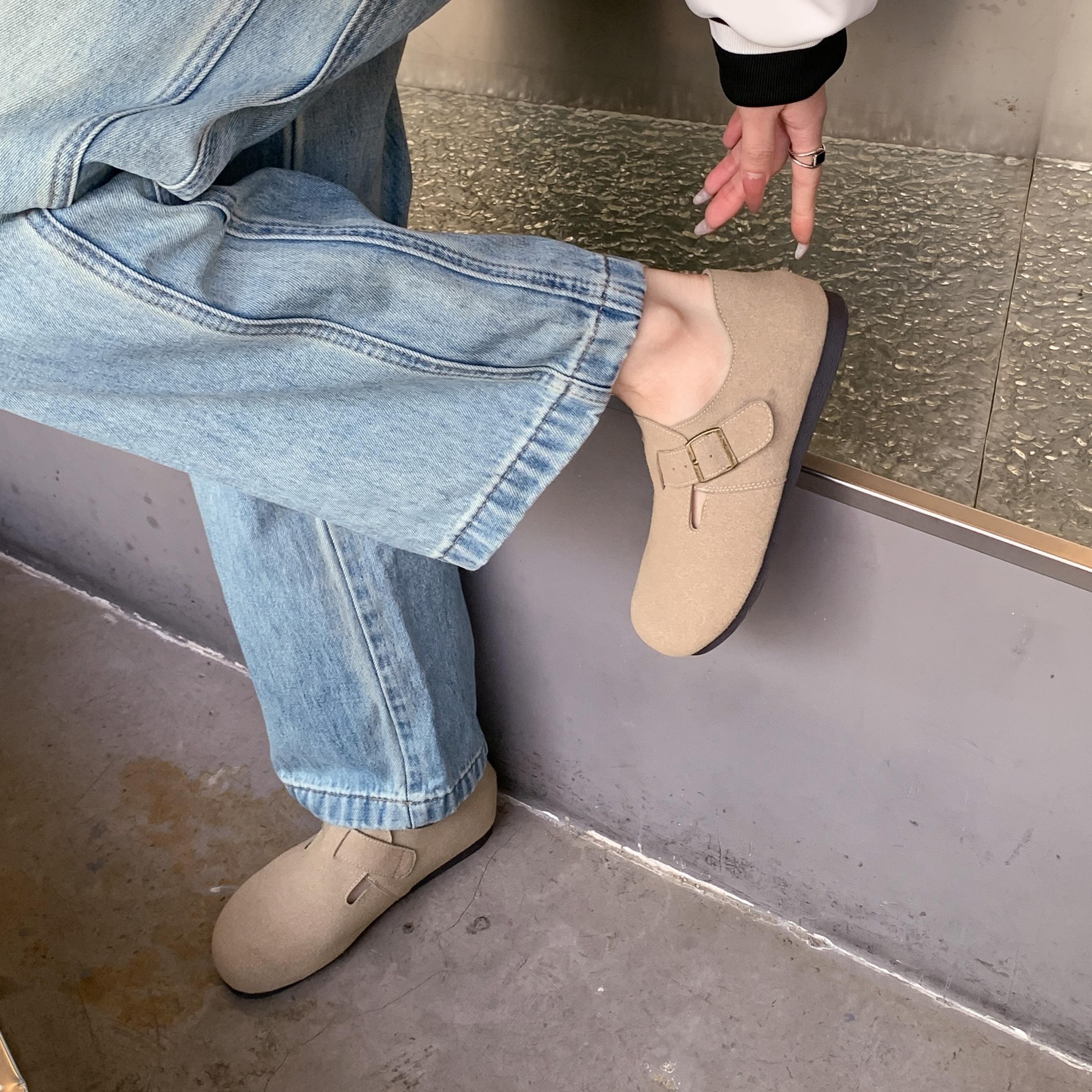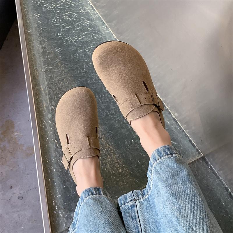赵逸逸厚底勃肯鞋女款全包2025春夏真皮懒人一脚蹬博肯单鞋半拖鞋
