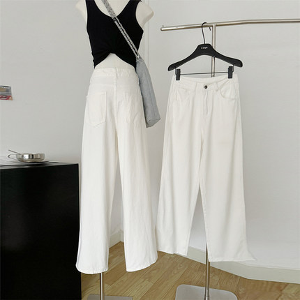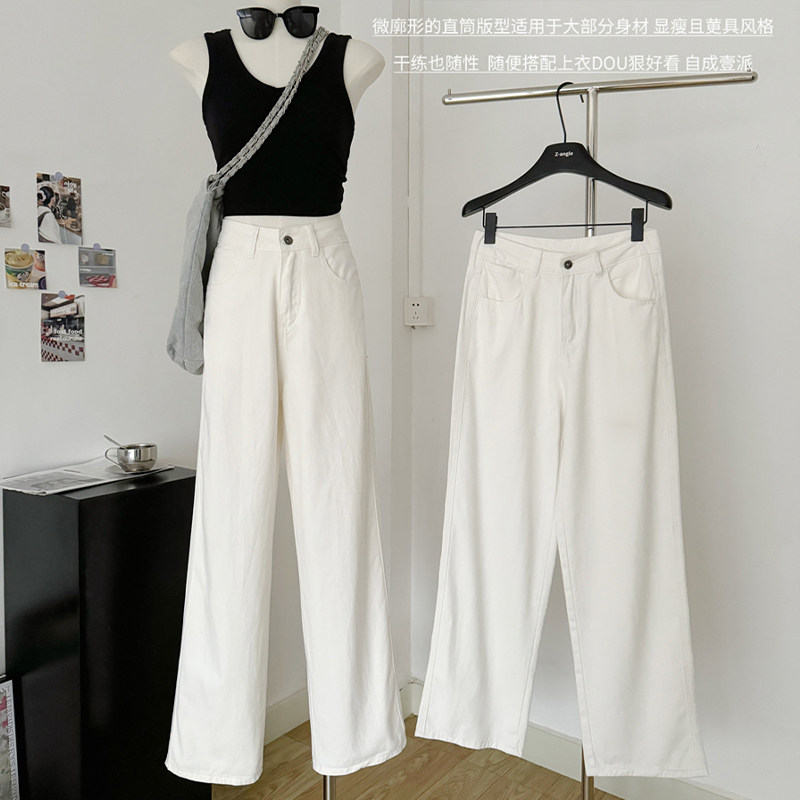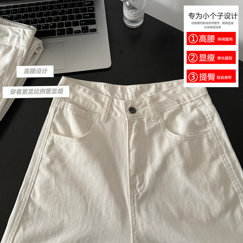 小个子150裤子白色简约牛仔裤女夏季阔腿小码百搭145xs窄版直筒裤