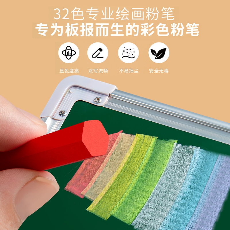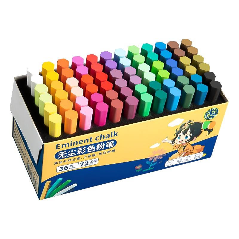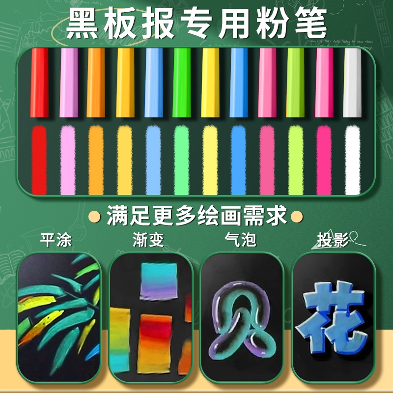 彩色粉笔无尘儿童黑板报专用颜色鲜艳幼儿园教学家用多色水溶性超显色教师用不脏手可湿擦送粉笔套无毒六角