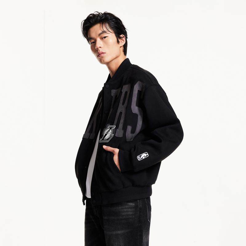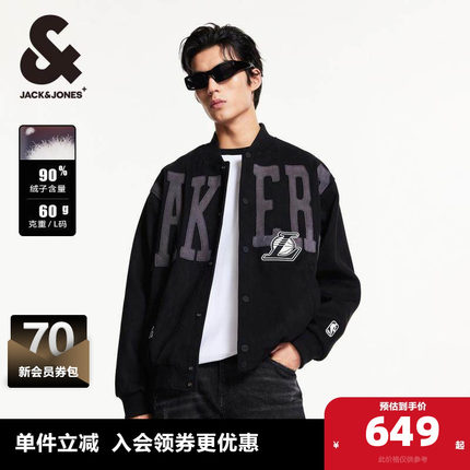 杰克琼斯NBA联名款湖人队冬季刺绣logo宽松棒球羽绒服男款男装