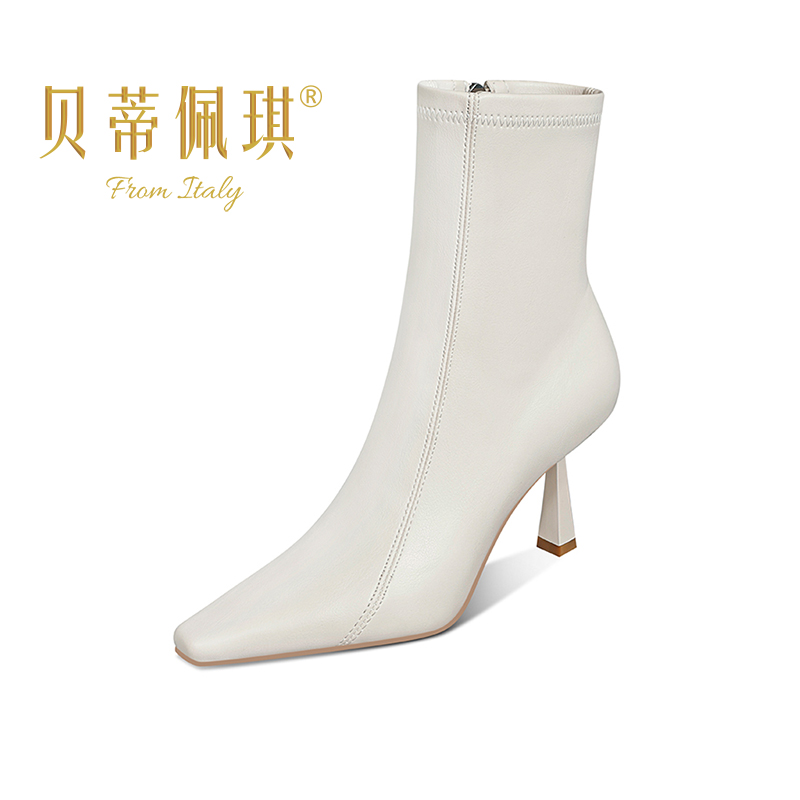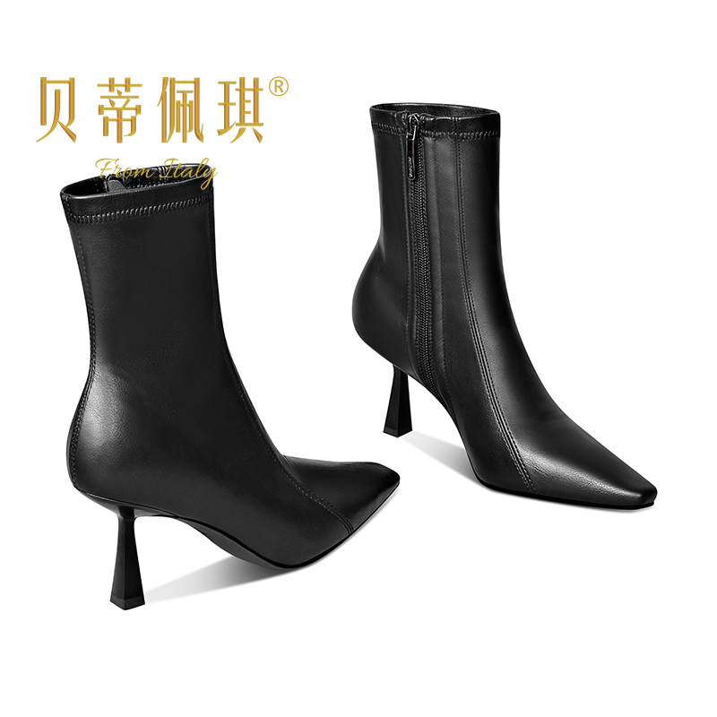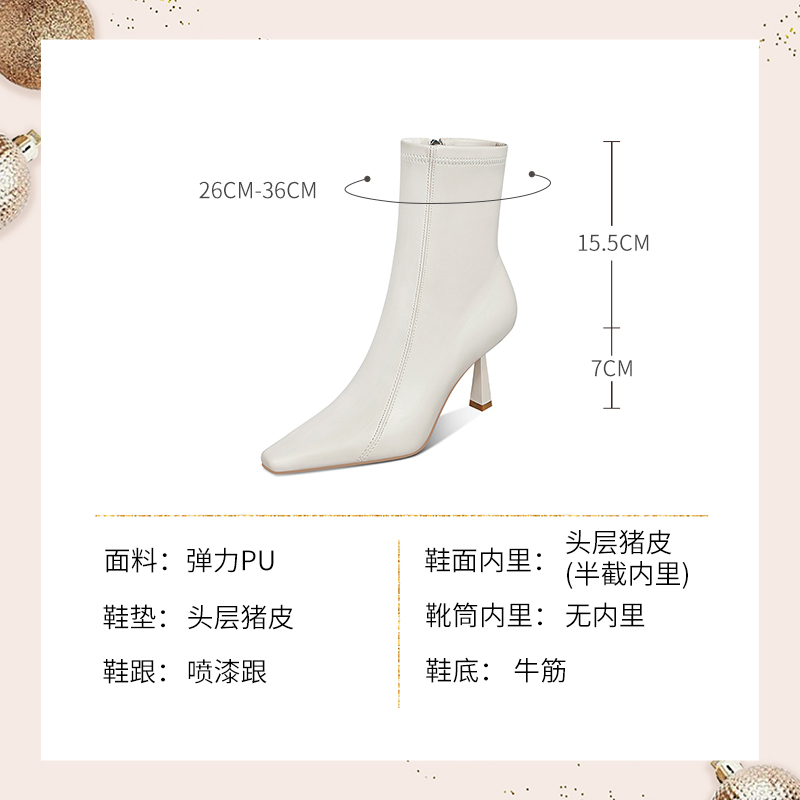 弹力瘦瘦靴女2025年秋冬季新款短筒靴子黑色小方头细跟高跟鞋百搭