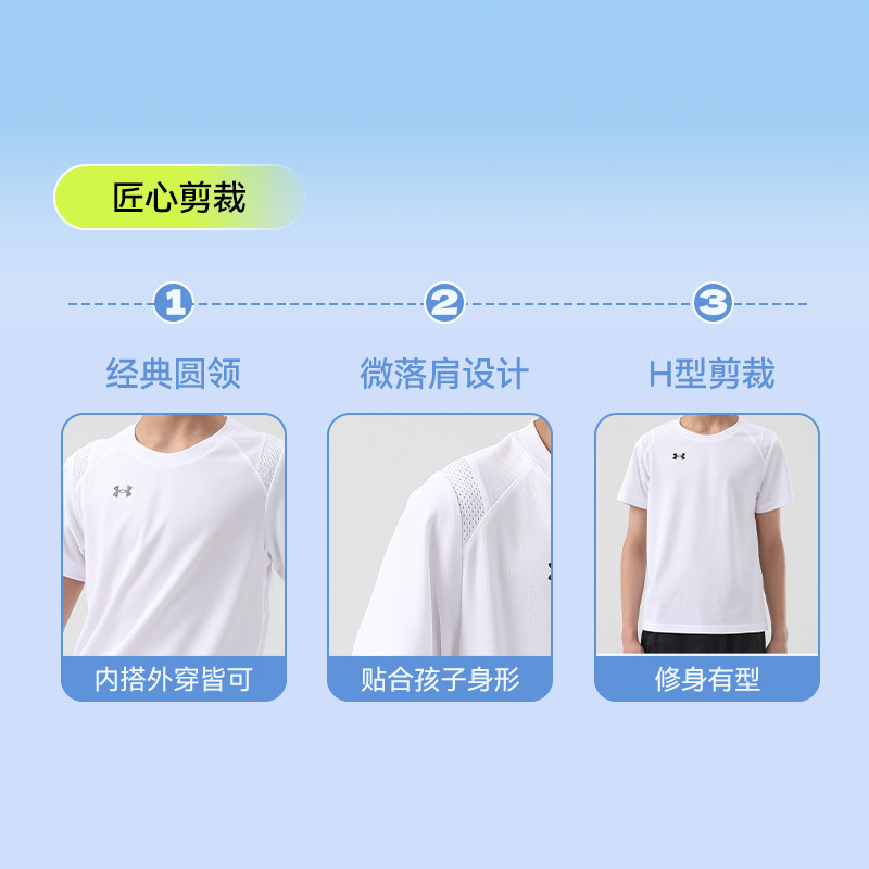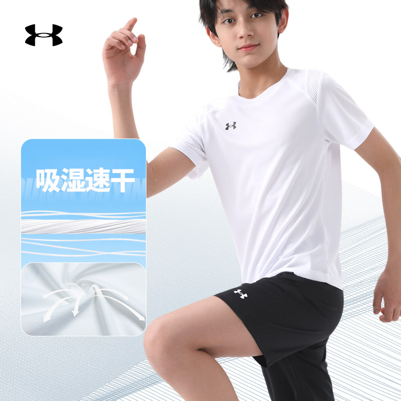 安德玛儿童速干短袖T恤男童装夏季薄款透气中大童跑步运动训练服