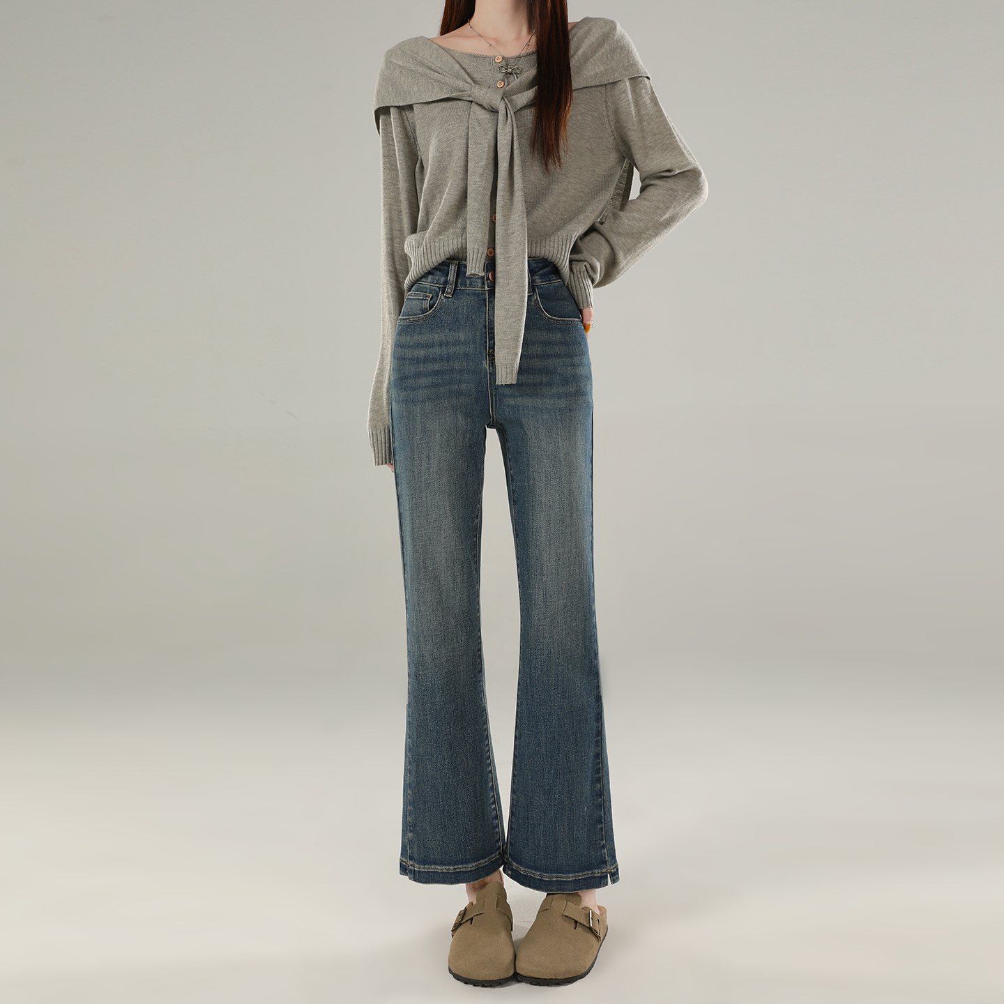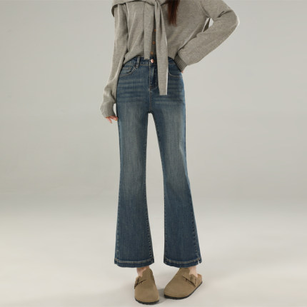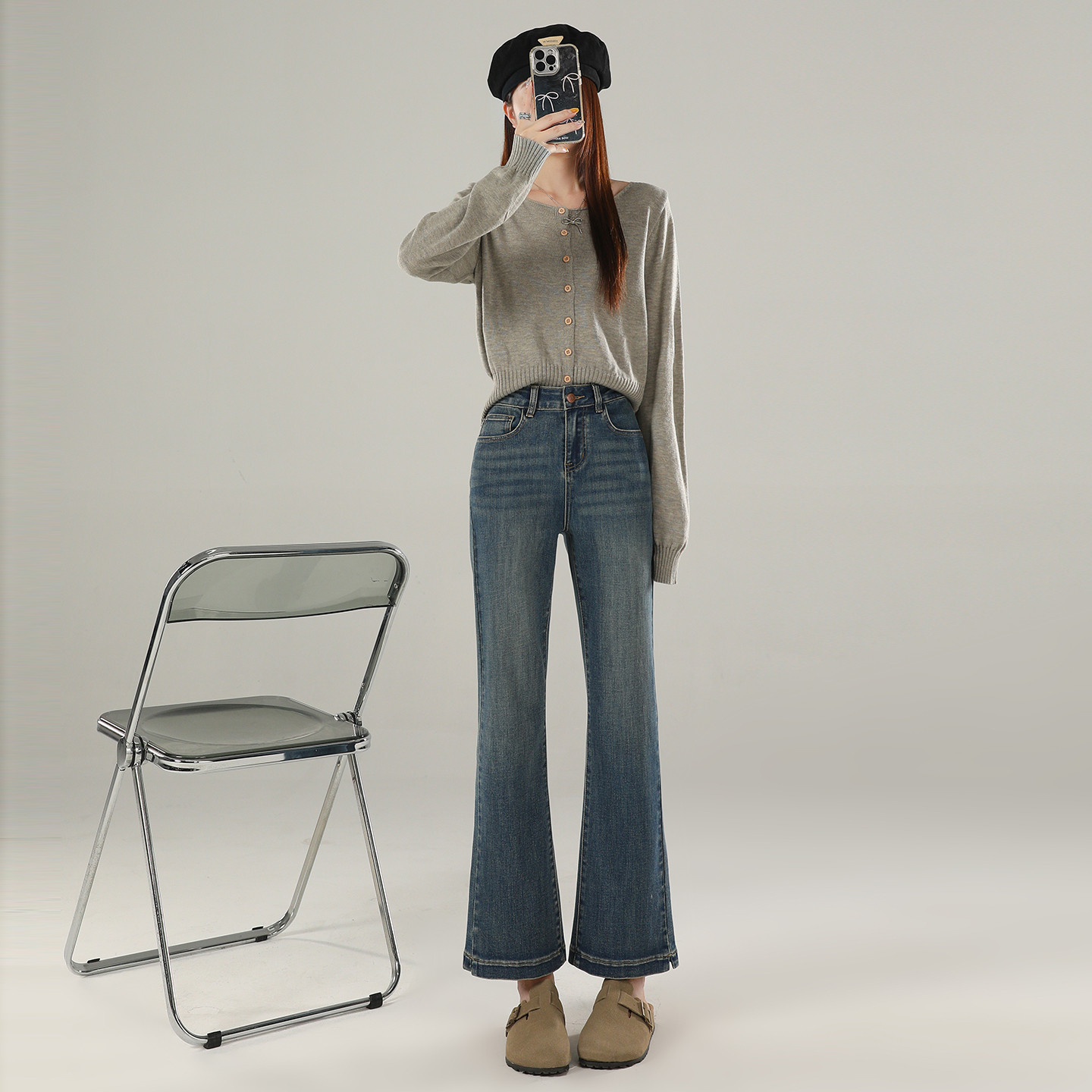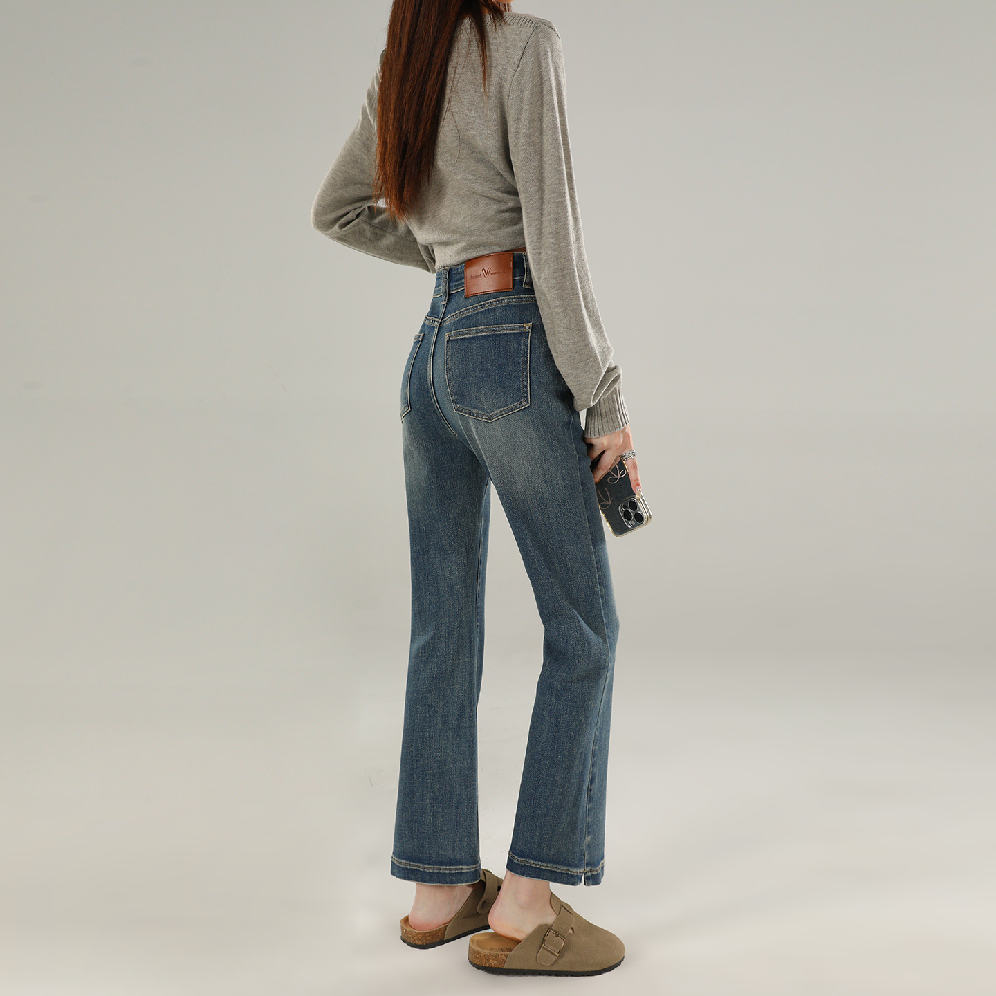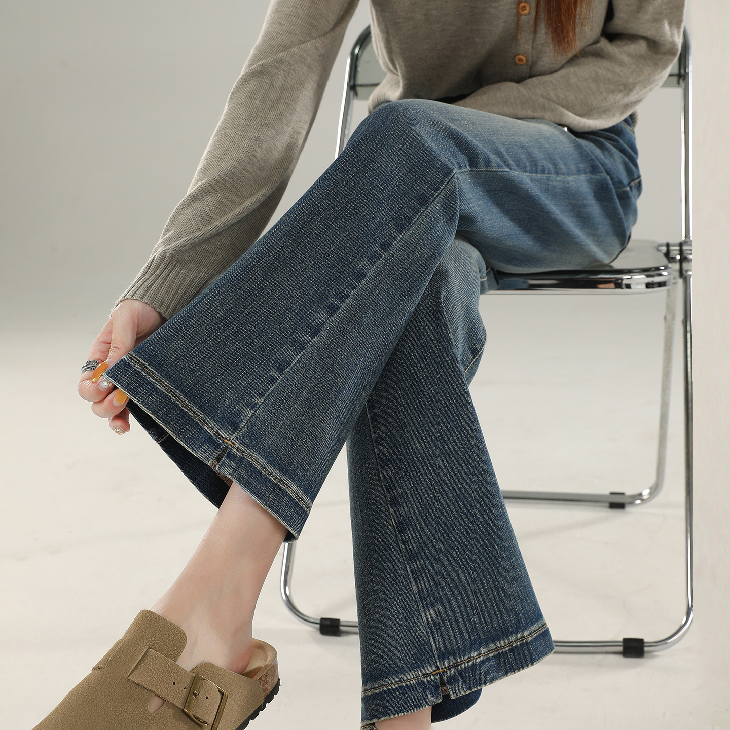 复古微喇牛仔裤女2025新款秋季美式弹力修身显瘦小个子高腰喇叭裤