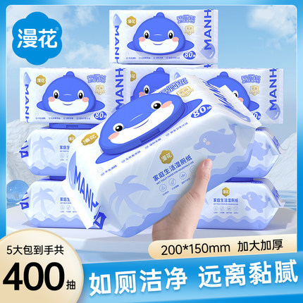 漫花5大包80抽湿厕纸女生专用擦屁屁私处纸巾加厚加大湿巾实惠装