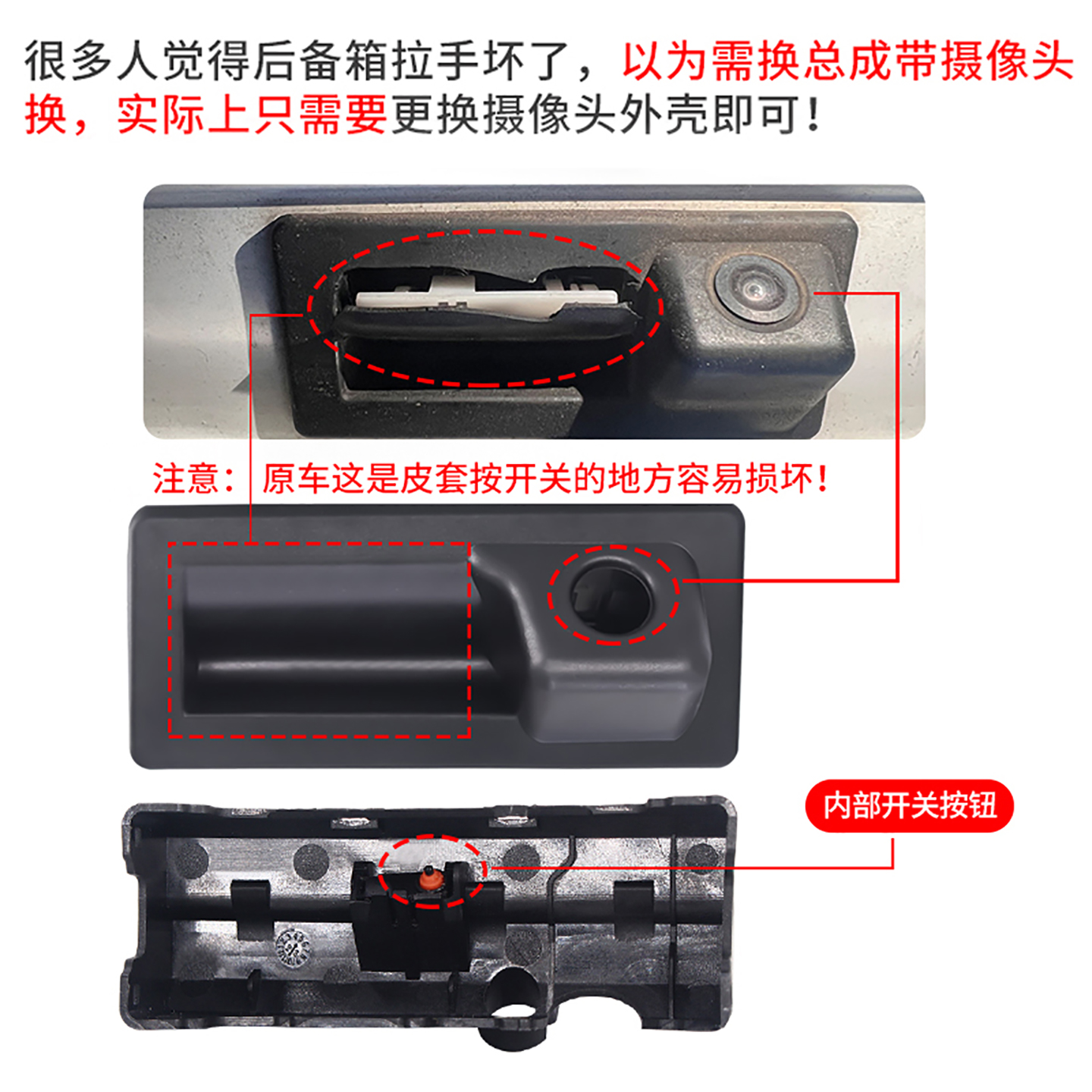 适配奥迪A3A4LA5A6LA8Q3Q5Q7途观摄像头后备箱行李箱尾门扣手开关
