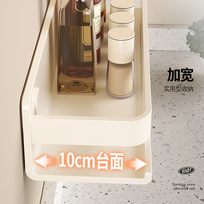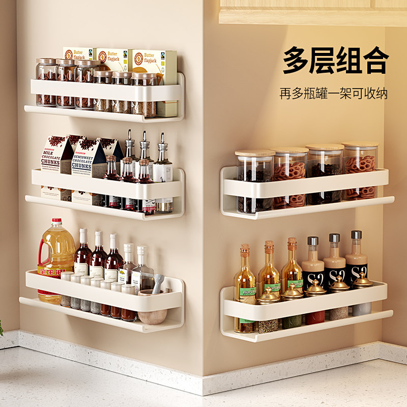 奶白厨房置物架不锈钢免打孔壁挂式调料品油盐酱醋调味料收纳架子