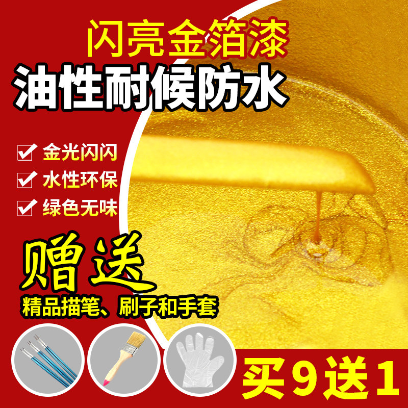 金霸闪光黄金漆金色油漆闪光金箔漆水性金漆24K金粉漆描墓碑油漆