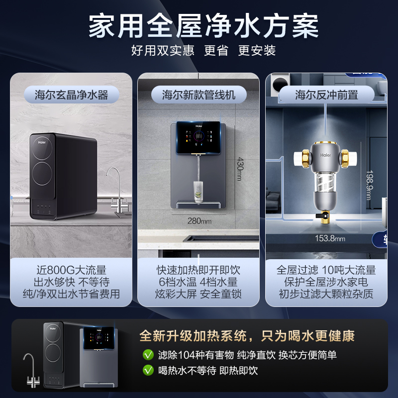 海尔净水器家用直饮加热壁挂式管线机ro反渗透厨房新款M5黑金刚