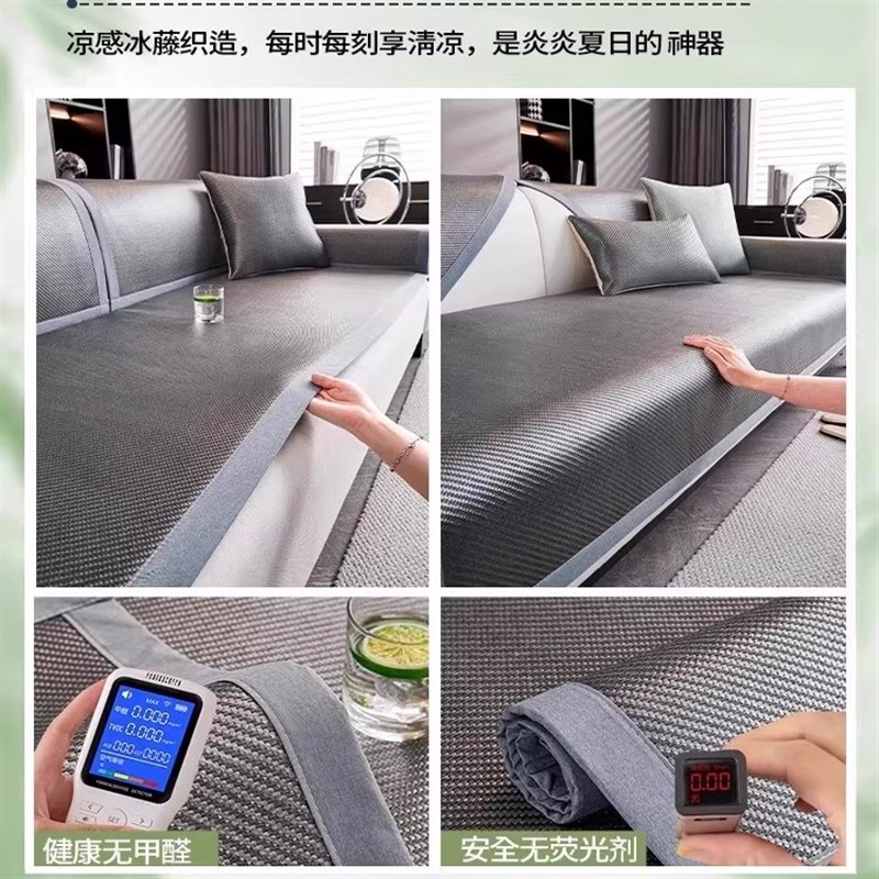 日本进口2025夏季新款轻奢冰藤席沙发垫凉席冰丝凉垫套防滑