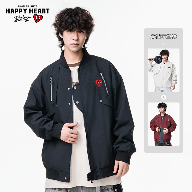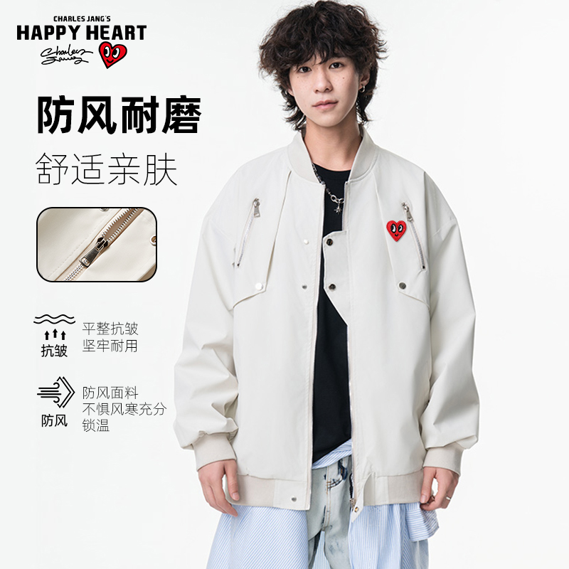查尔斯桃心 美式高街工装外套男春秋拉链棒球服女休闲飞行员夹克