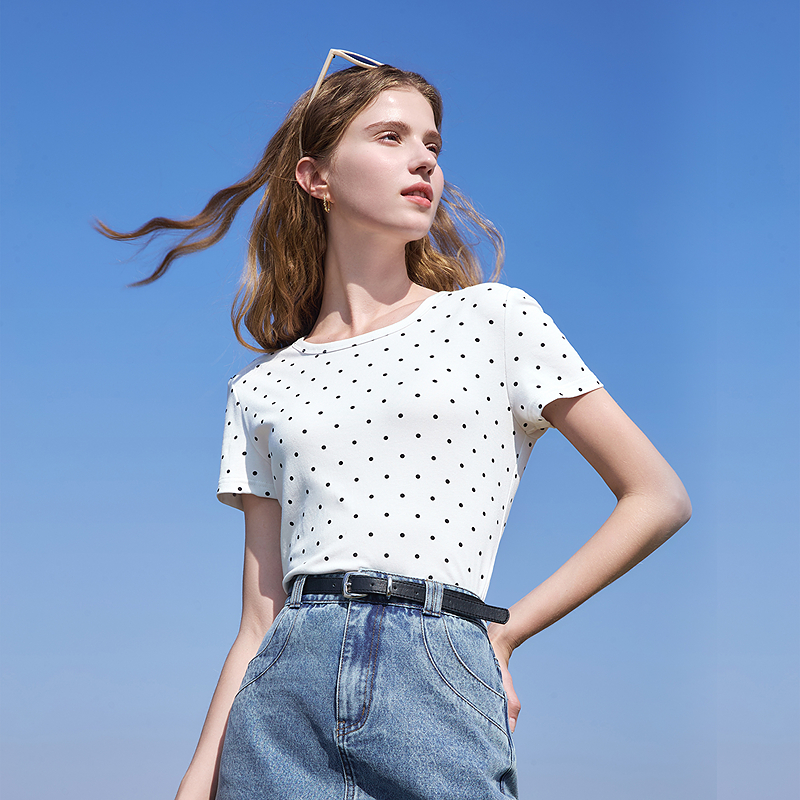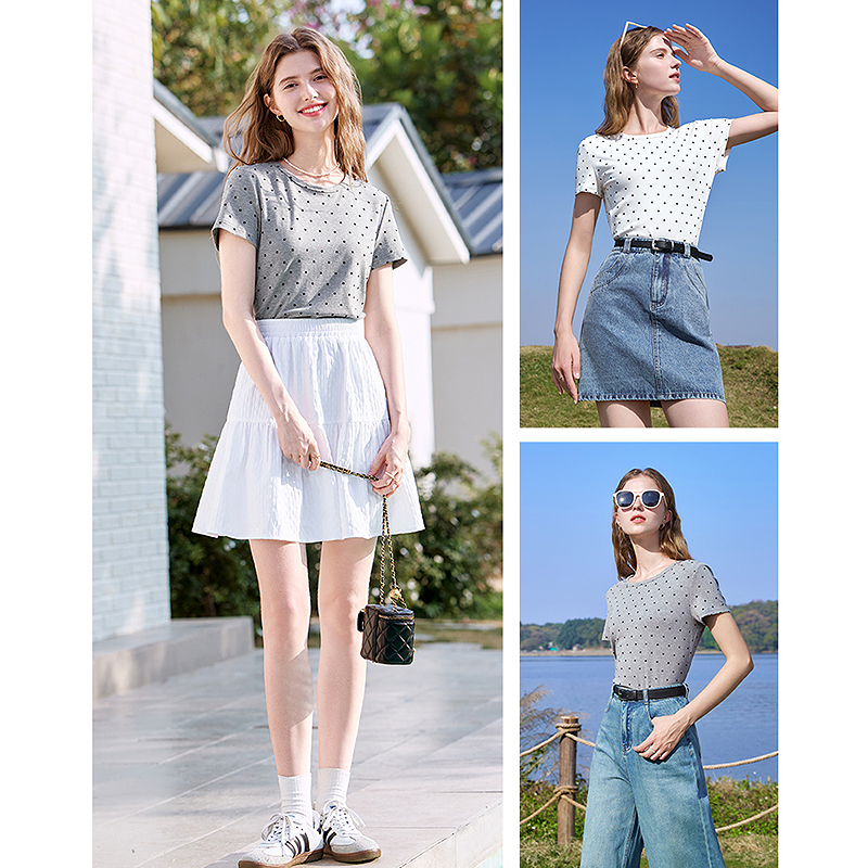 betu百图复古波点短袖T恤女2025年夏季新款圆领百搭体恤衫上衣