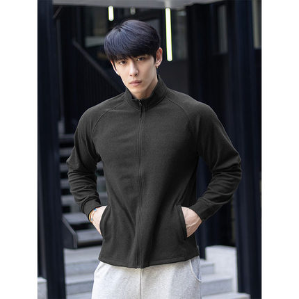 秋冬重磅保暖翻领长袖德绒打底衫拉链外套健身t恤修身外穿上衣男