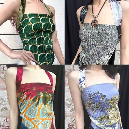 ANTIMOON合集四:挂脖特辑,遮斜方肌和副乳褶皱辣妹吊带丝巾上衣