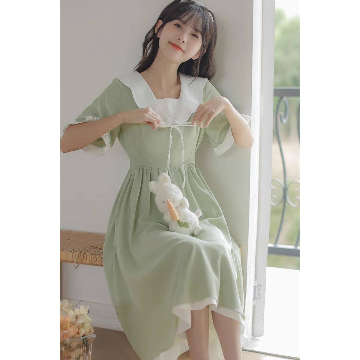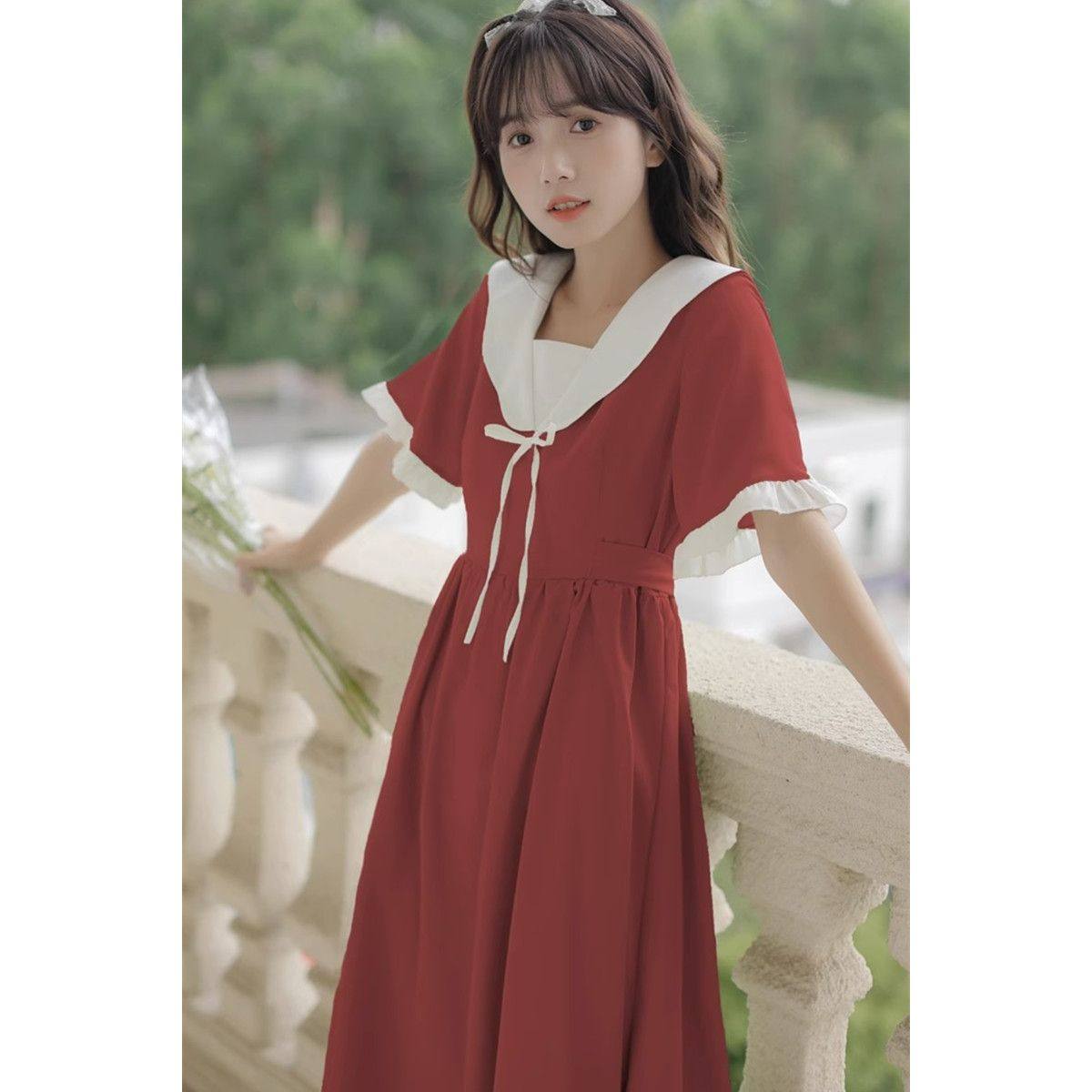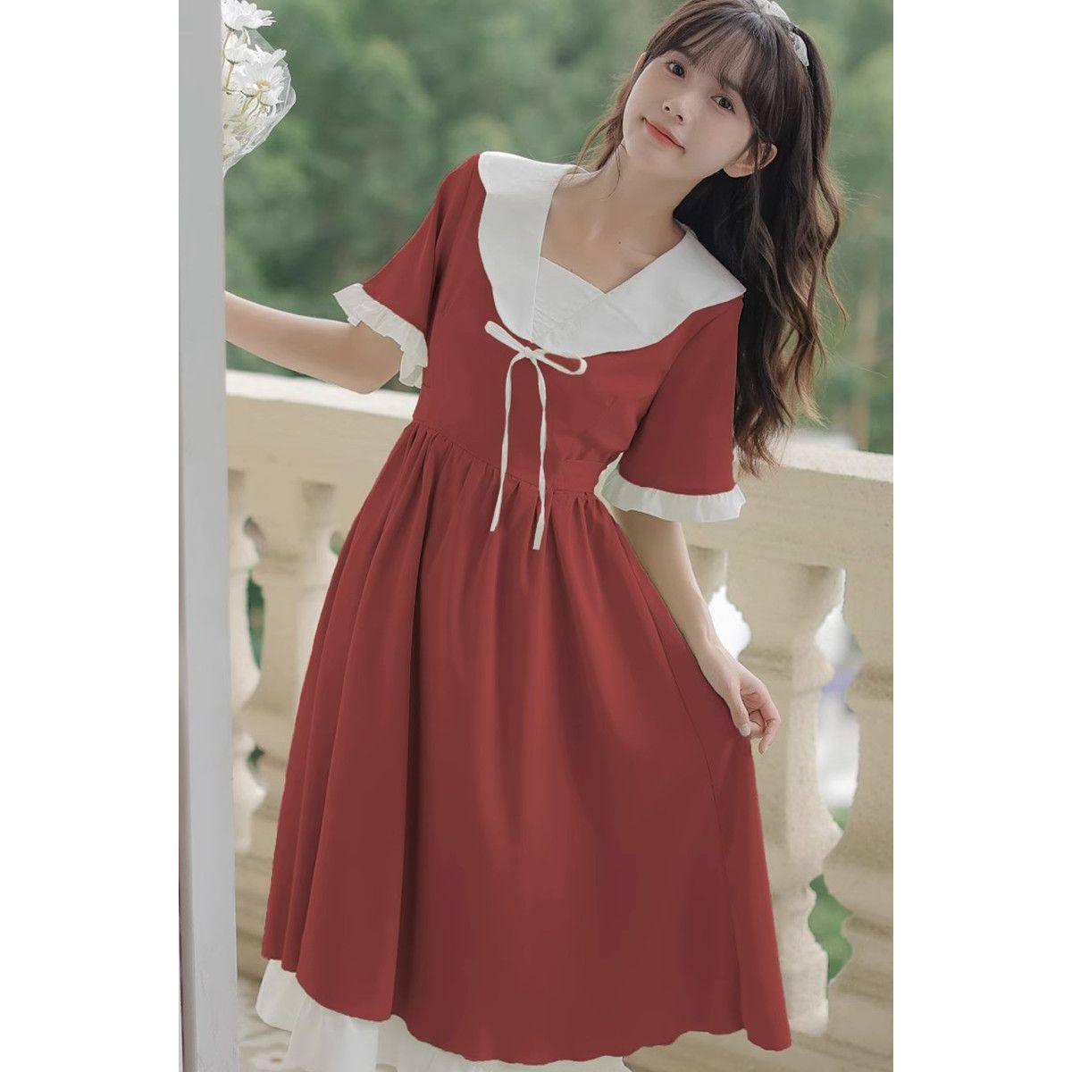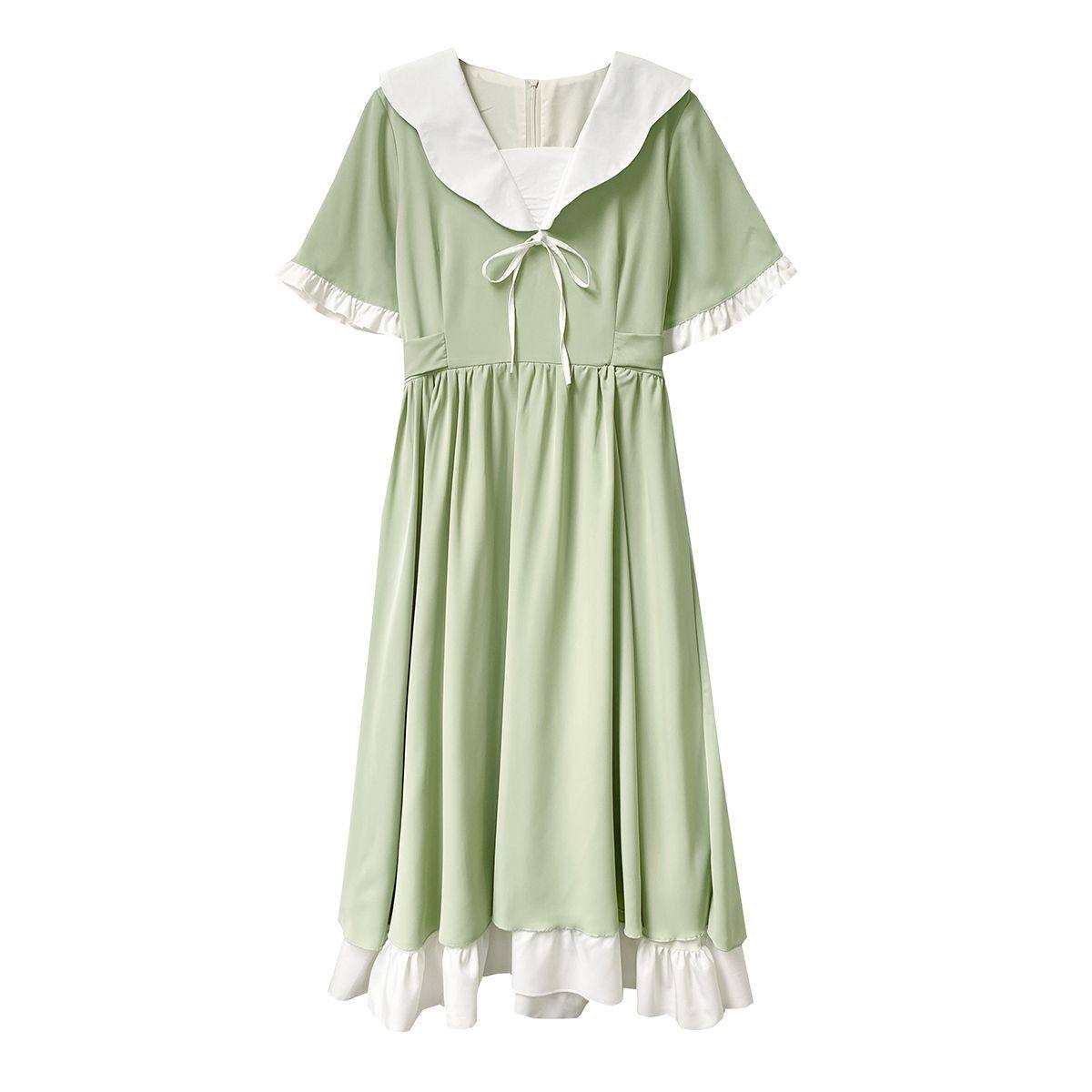 2025新款初中高中学生学院风日系甜美长裙子娃娃领连衣裙少女夏装