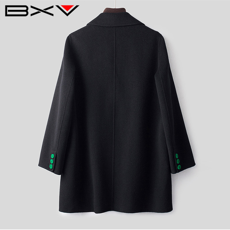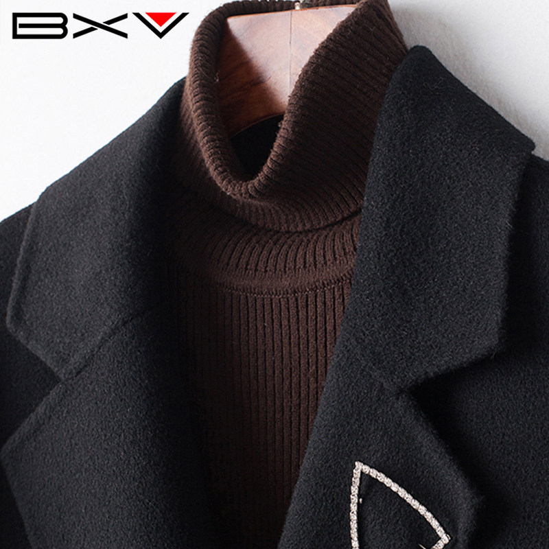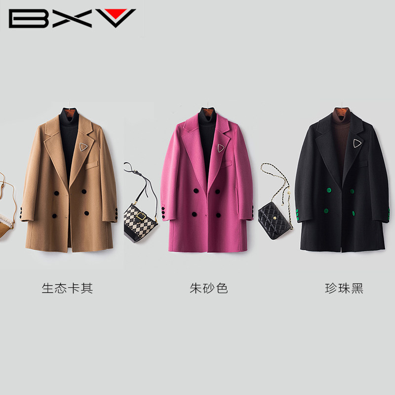 BXV翻领双面羊绒大衣女中长款2025冬季新款气质双排扣绵羊毛外套