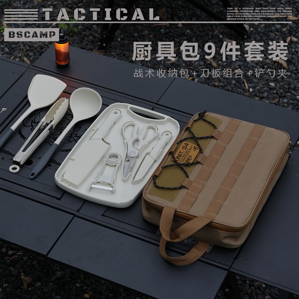 【拍一发十】户外露营野餐便携10件套厨具包套装菜板耐磨锅铲