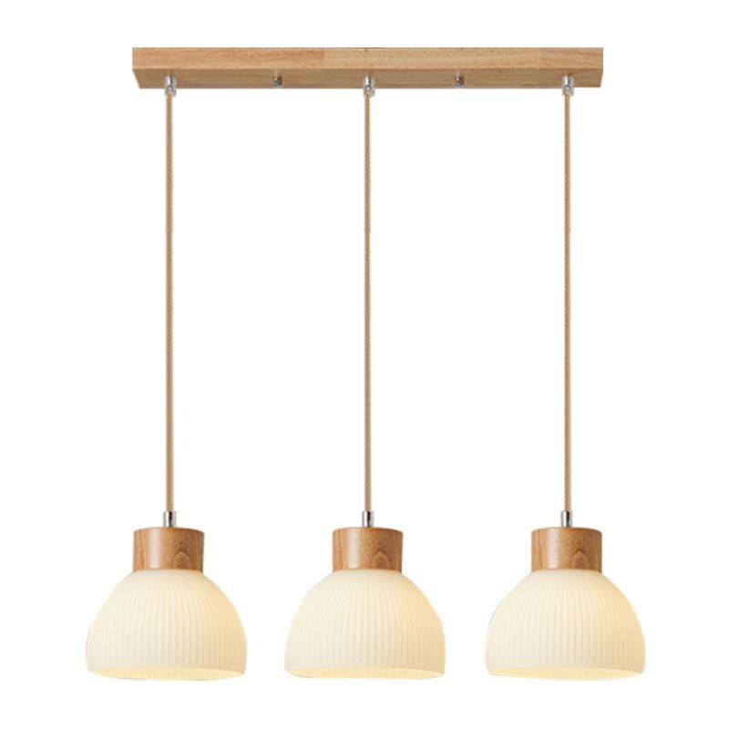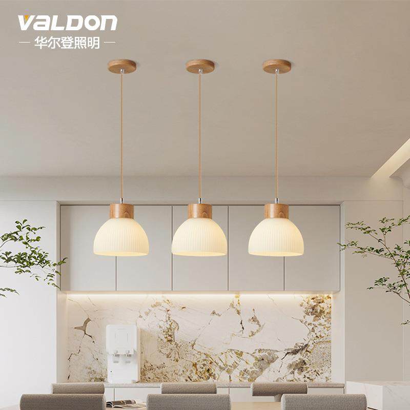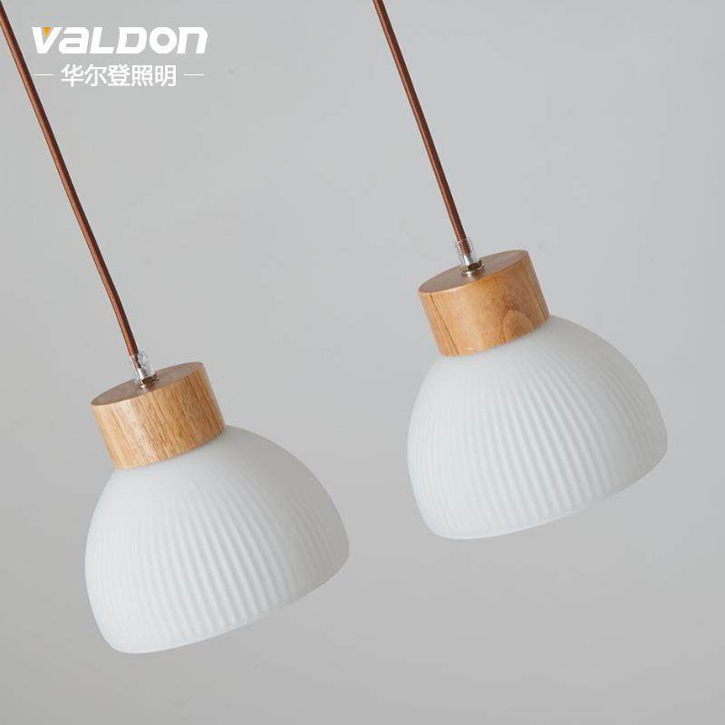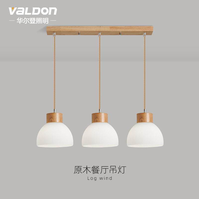 胡桃木色餐厅灯吊灯三头玻璃北欧led餐桌饭厅灯现代中式吧台灯具