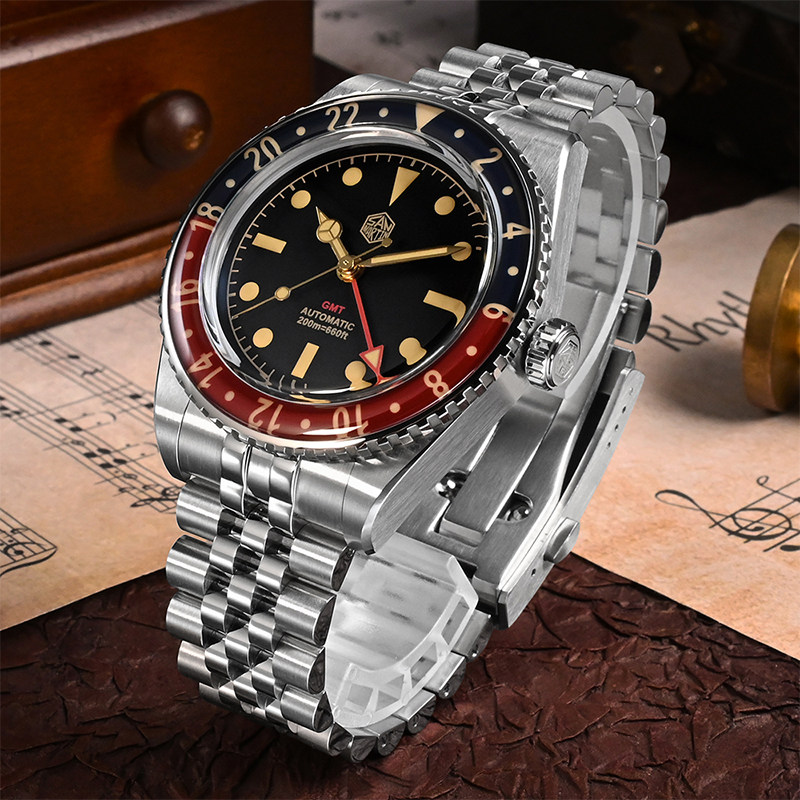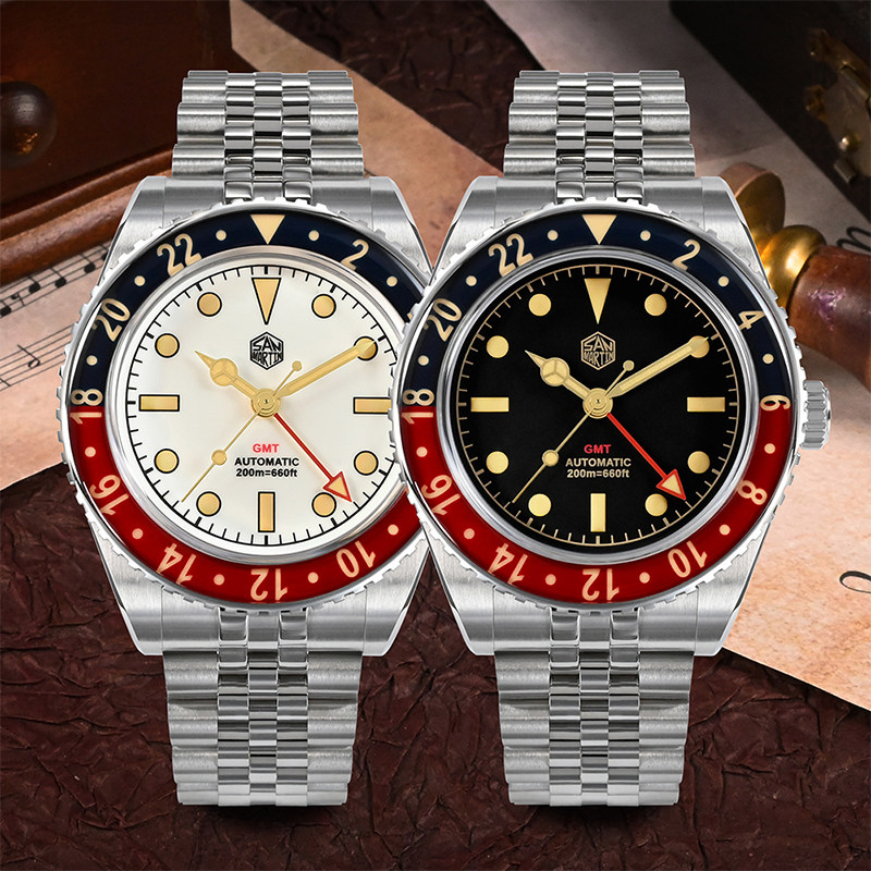 San Martin军魂定制GMT可乐圈蓝宝石圈夜光防水手表男机械SN005-2