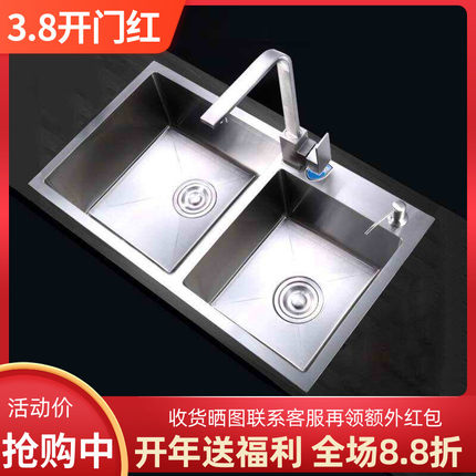 不锈钢加厚手工水槽双槽厨房洗菜盆家用洗碗槽水池套餐台上台下盆
