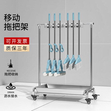 可移动拖把架不锈钢商用扫帚置物收纳清洁工具沥水架拖布架保洁车