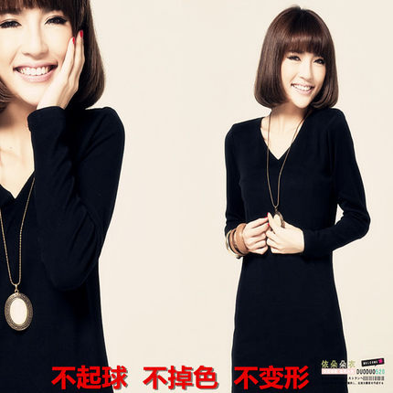 V领新款纯棉大码秋冬中长款打底衫长袖加厚加绒t恤女装保暖上衣