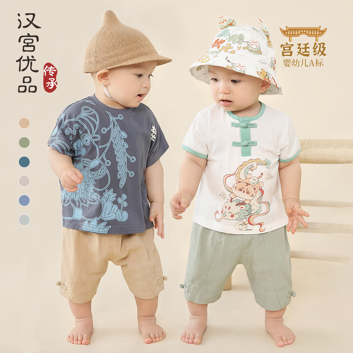 儿童裤子七分裤夏季男童休闲裤薄款女童长裤婴儿衣服国风宝宝夏装
