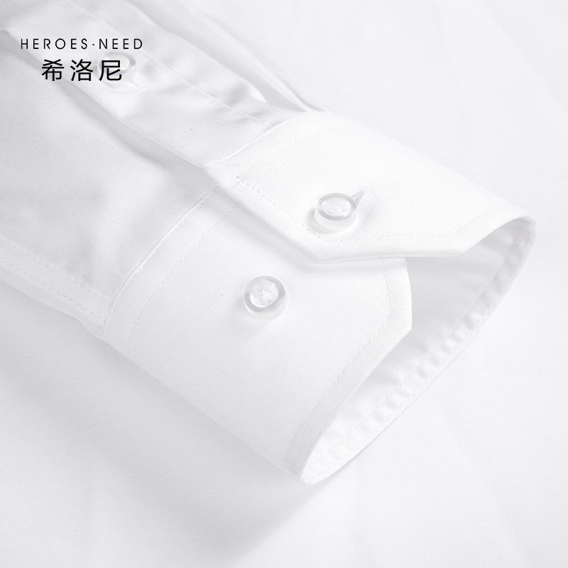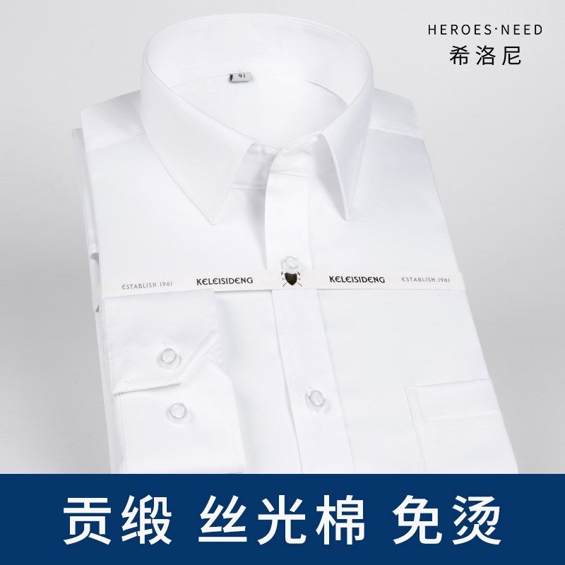 HN高端丝光棉免烫纯棉纯白色衬衫男士全棉长袖高级感商务丝棉衬衣