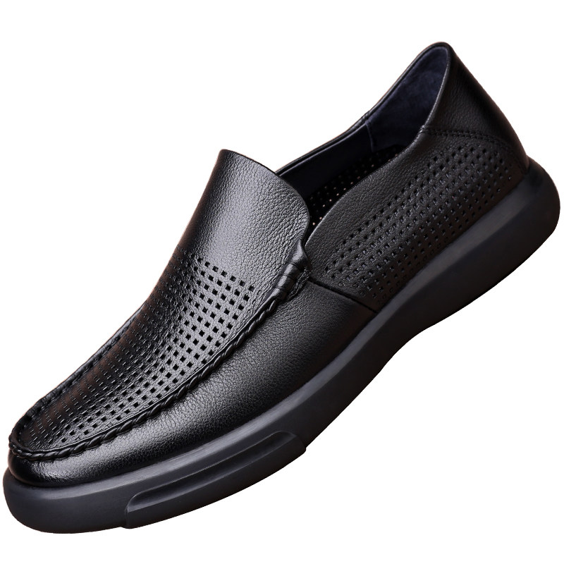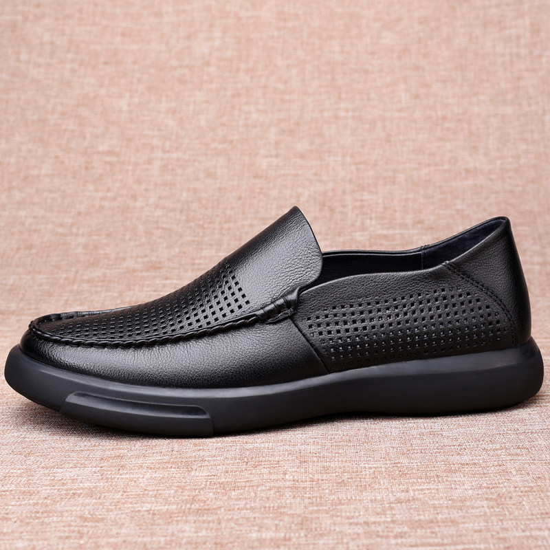 夏季男士商务休闲镂空皮鞋真皮头层牛皮透气洞洞鞋软皮软底皮凉鞋