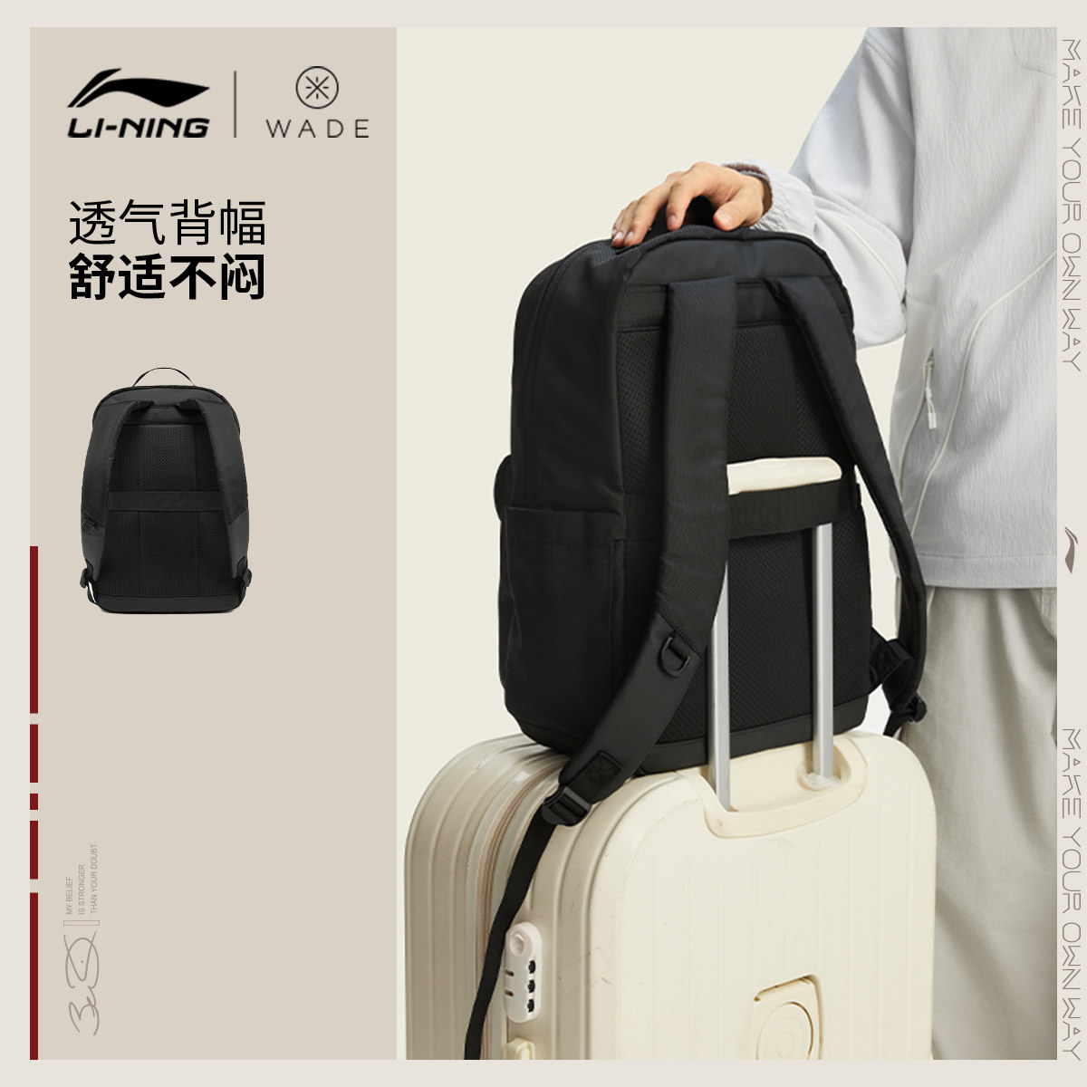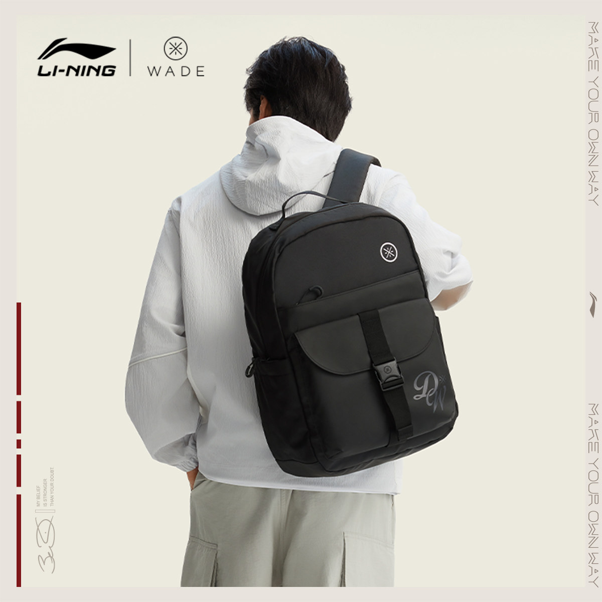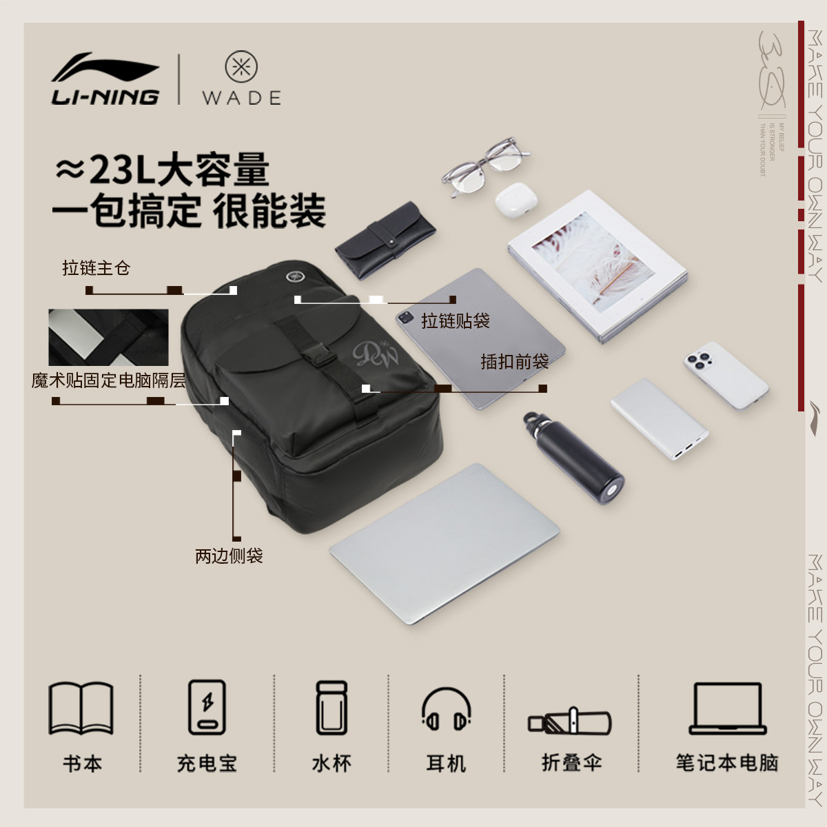 李宁双肩包男士2026新款韦德通勤商务防泼水背包学生运动书包女