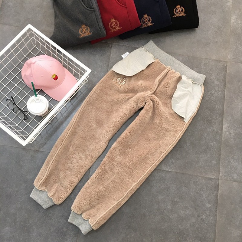 羊羔绒裤子女秋冬季加厚保暖羊羔绒加绒运动裤宽松休闲裤卫裤大码