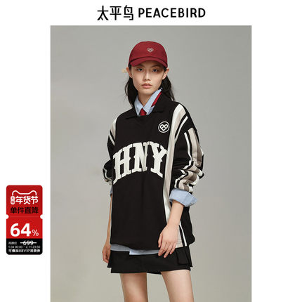 太平鸟男装 撞色拼接休闲卫衣秋季男士液氨潮流潮牌翻领上衣