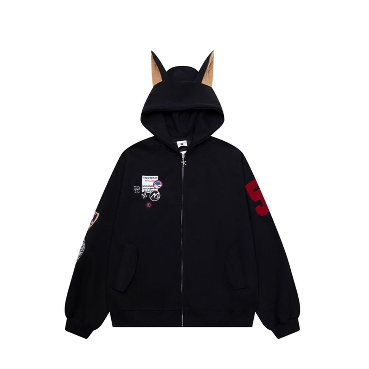 美式潮牌迷彩杜宾犬开衫连帽卫衣男女春秋潮流宽松上衣棒球服外套
