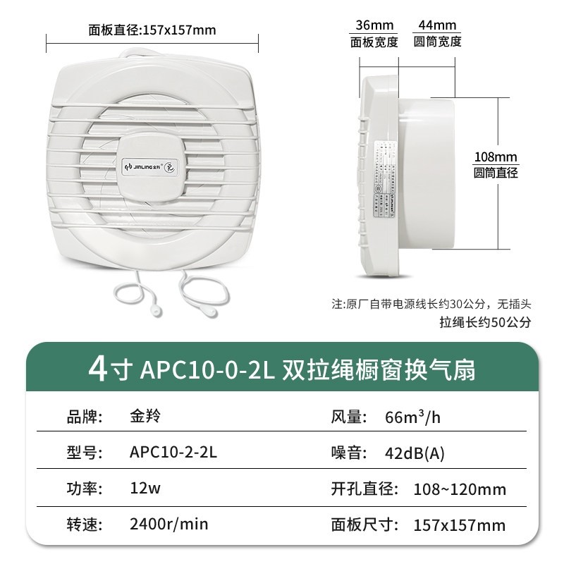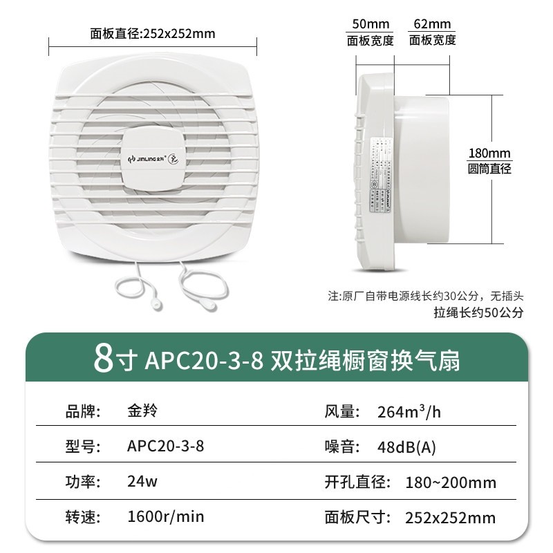 金羚6寸排风扇卫生间窗式4拉绳换扇气扇厨房8寸墙壁静音抽风排气