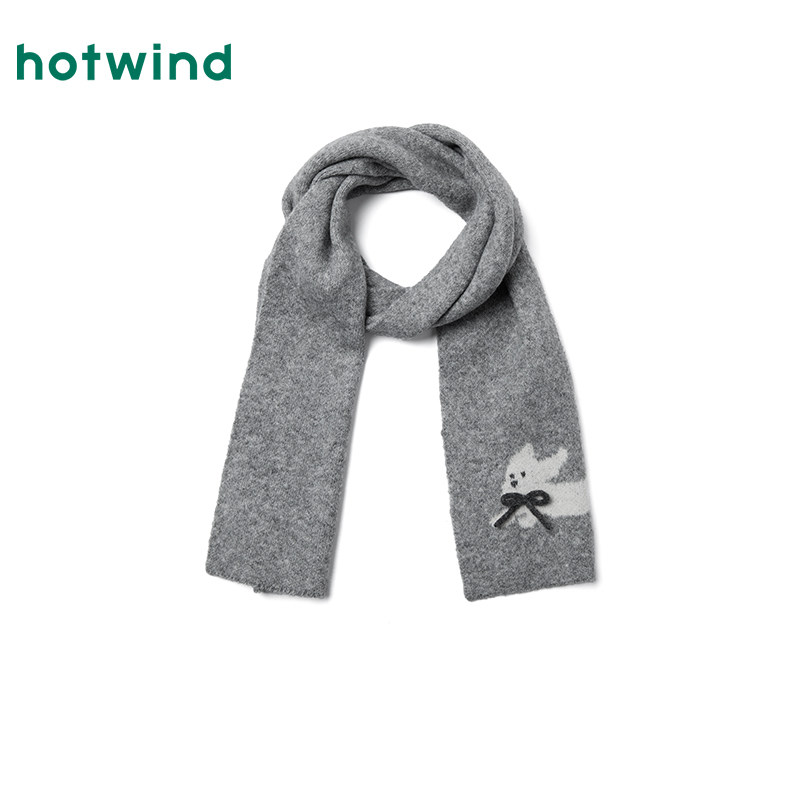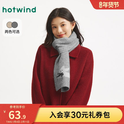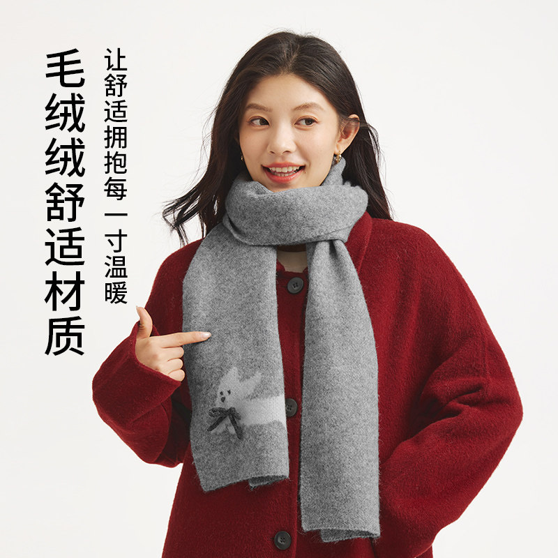 热风女士围巾2025年冬季新款提花小狗针织围巾含羊毛保暖围脖围巾