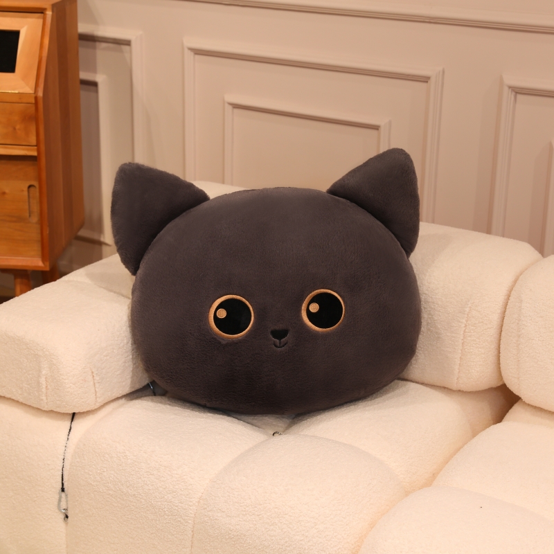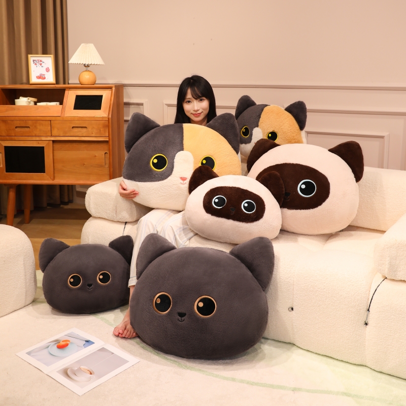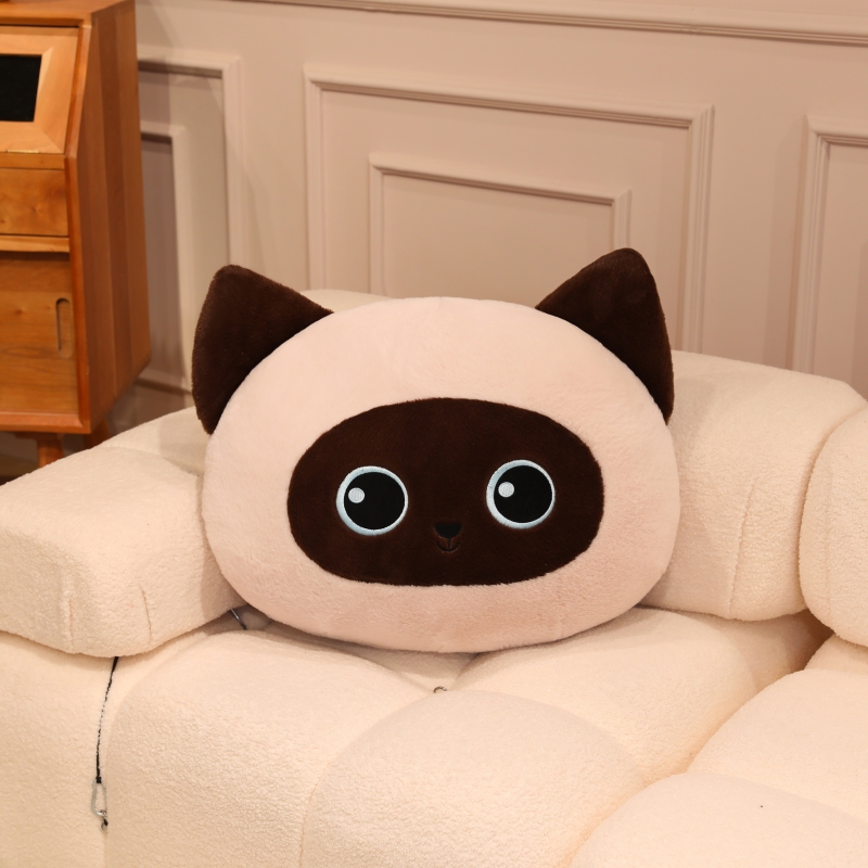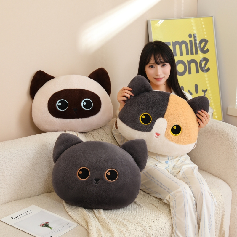 可爱猫头抱枕小黑猫咪玩偶三花猫公仔暹罗猫毛绒玩具娃娃女生礼物