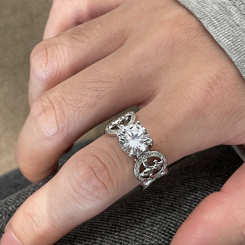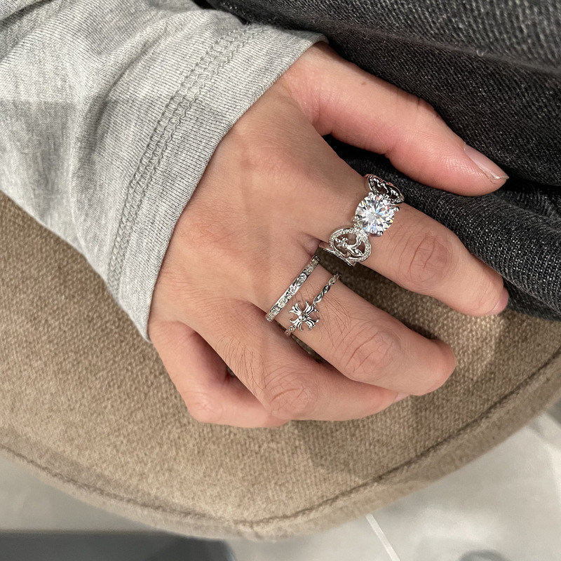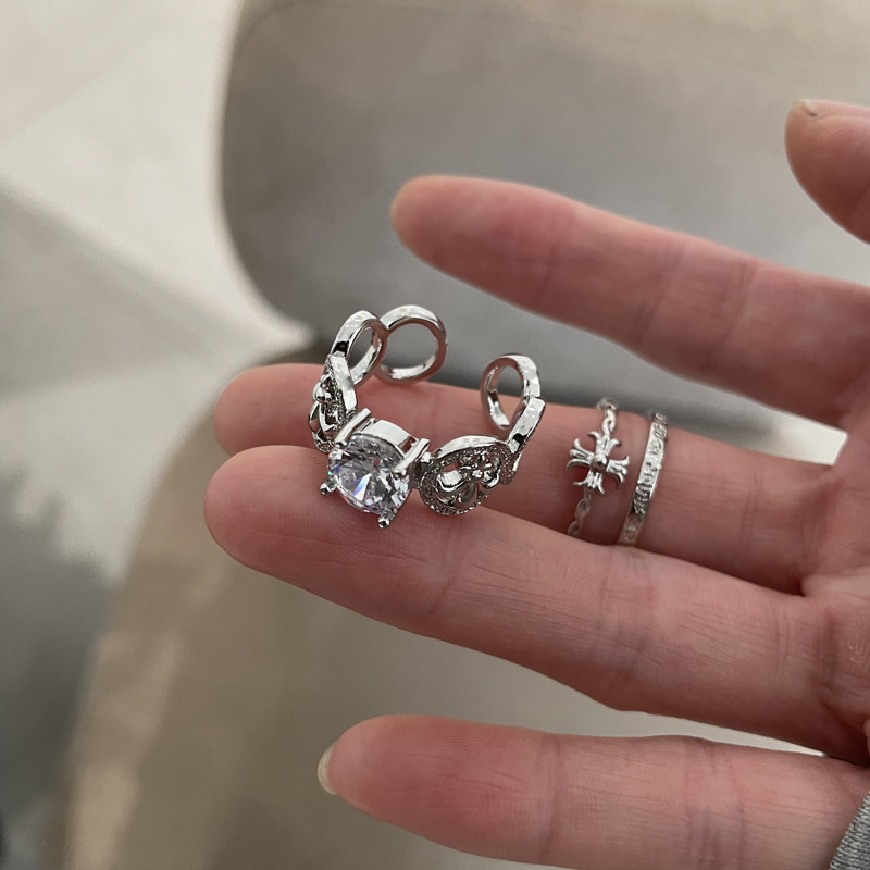 小众设计镶锆十字架闪钻开口戒指女ins轻奢时尚个性指环新款食指