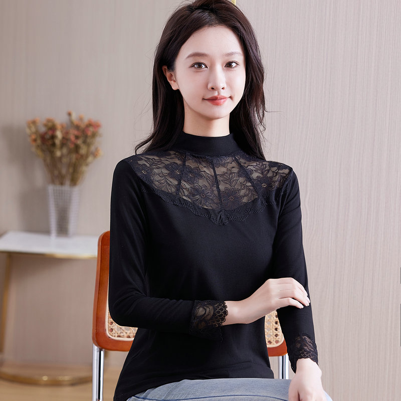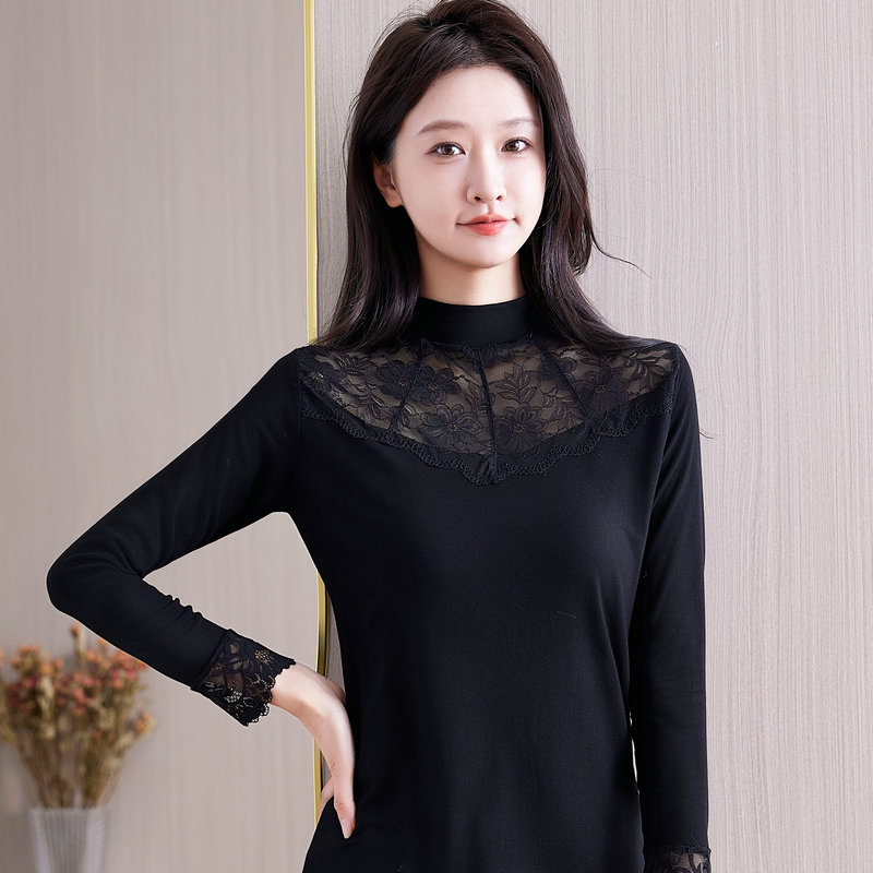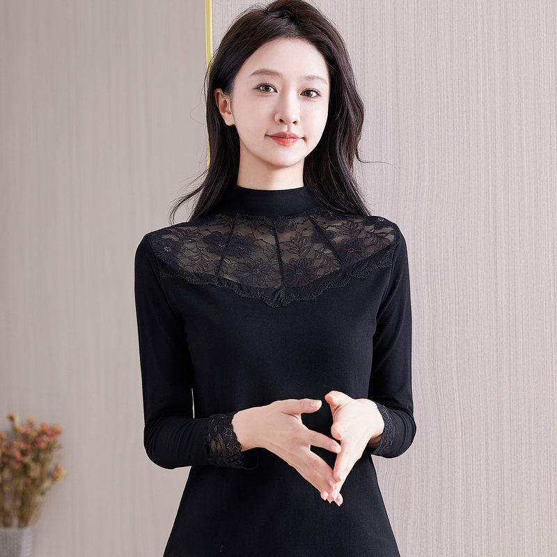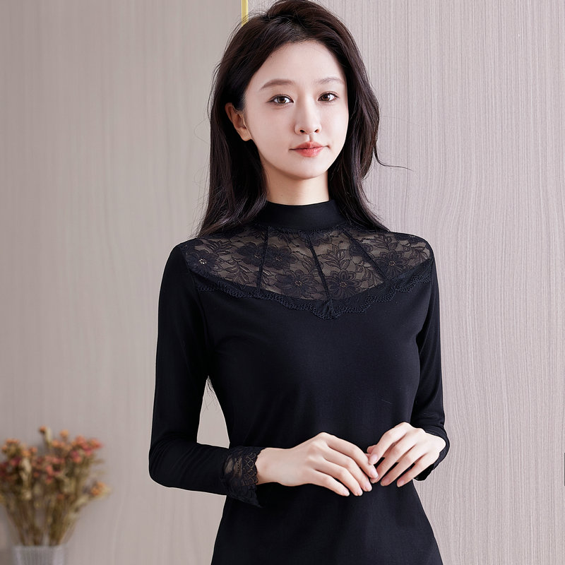 半高领蕾丝莫代尔内搭小衫女春秋2025新款时尚洋气打底衫长袖T恤
